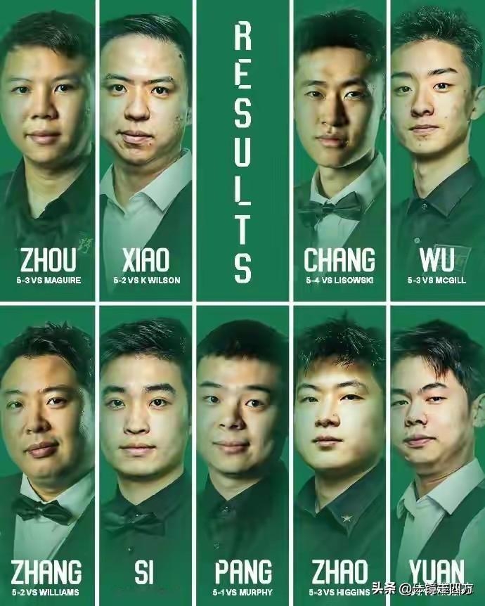 随着昨晚两位中国球员周跃龙和赵心童先后以5-4赢得最后两场斯诺克世界大奖赛1/4决赛的中外对决,中国球员就此包揽了本届赛事四强,创造历史!10人参赛9人进16强,之后6人进8强,1/4决赛把最后两位“异己分子”淘汰出局,实现四强全包揽,看来我们的斯诺克战将们是准备把斯诺克也打成乒乓球! 昨晚的两场比赛,周跃龙经过9局鏖战5-4险胜对阵阿里·卡特,赵心童也以5-4力克韦克林,加上之前的两场1/4决赛都是中国德比战,张安达和肖国栋已经胜出,这样,中国球员就神奇包揽了四强,半决赛将由周跃龙对阵张安达,赵心童对阵肖国栋。