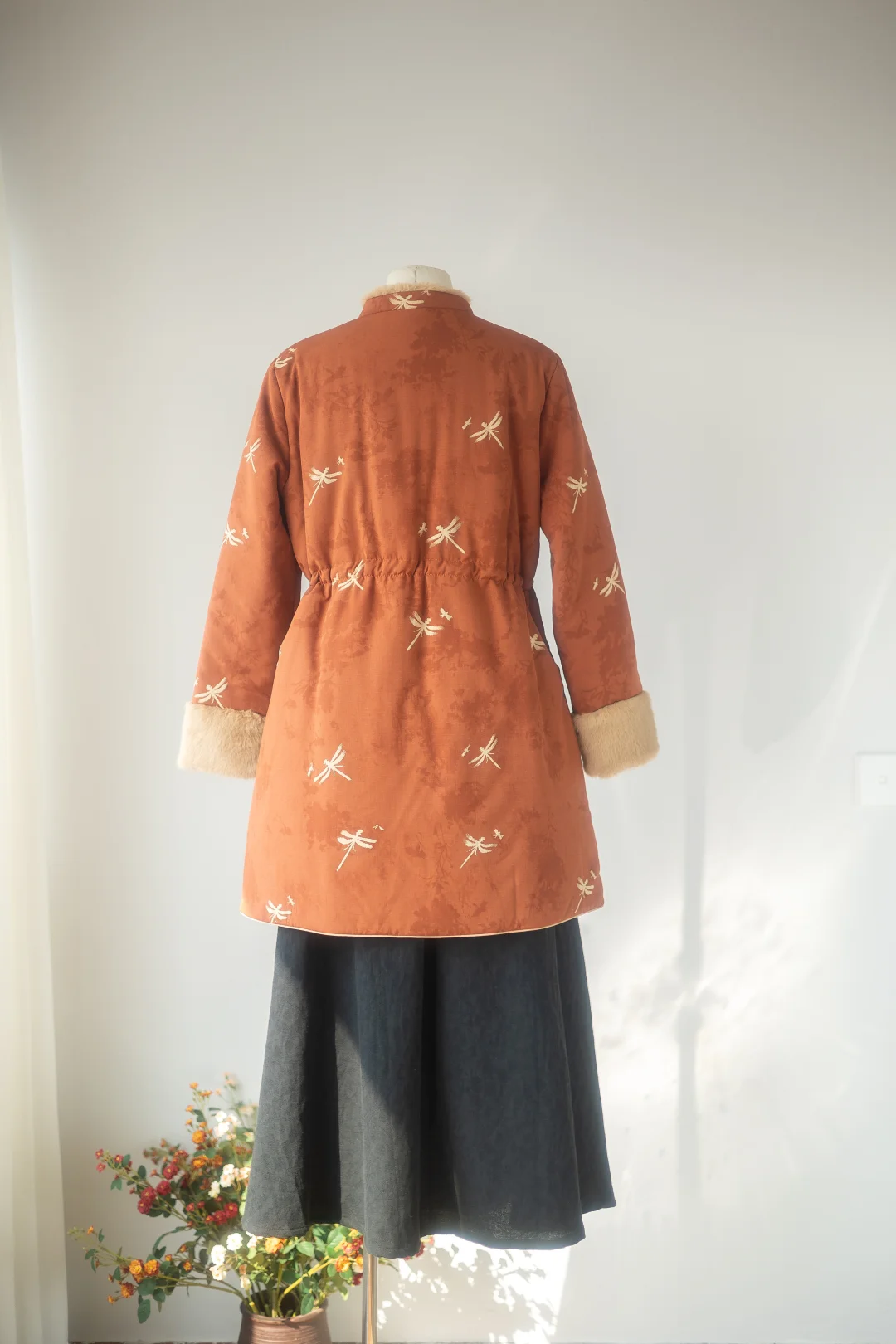 面料是竹节麻,领口和袖口都加了毛毛,亲肤又保暖,冬天脖子和手腕再也不怕冷啦