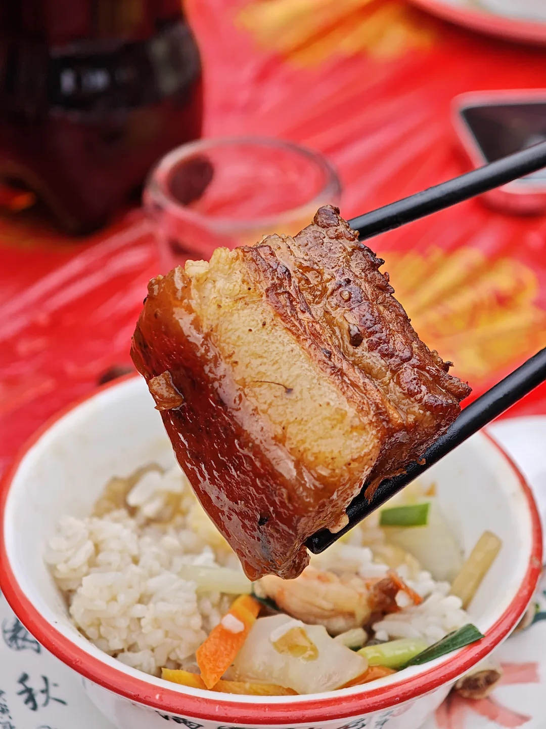 😍中午的年猪宴是重头戏,大家围坐在文创园广场,农家烧大骨、酥炸土猪肉、乡味焖五花这些特色菜陆续上桌,都是新鲜的土猪肉做的,吃得出朴实的乡味,热热闹闹的聚餐,满是过年的温馨感。