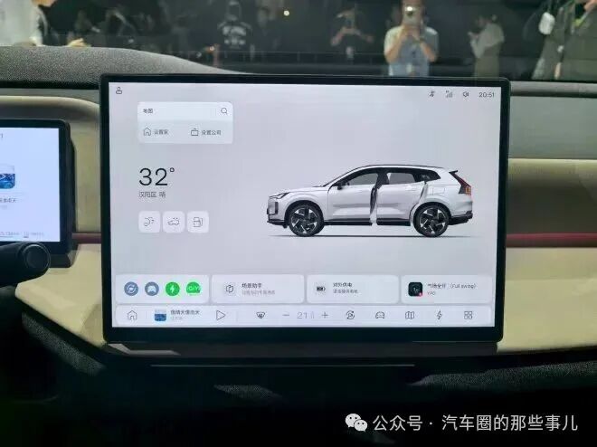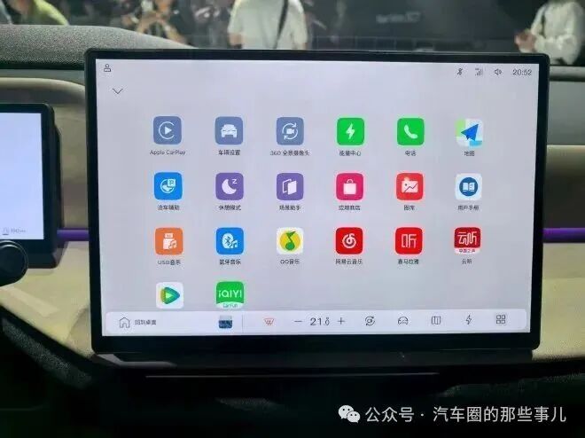 原11.2 英寸纵向布置的方形中控屏被完全取代,变成了更加主流的横置布局,并进一步优化了分辨率与色彩还原度,内置高通骁龙8155车规级车机芯片。而相应的它的车机UI也有了重新的设计,基础页面是更加实用的底部双托盘设计,主菜单则是块状排列图标,设置调整界面也是很主流的左侧信息树样式,功能上,常用的导航,影音娱乐,车辆控制、Carplay等主流功能全部配齐,非常之主流。