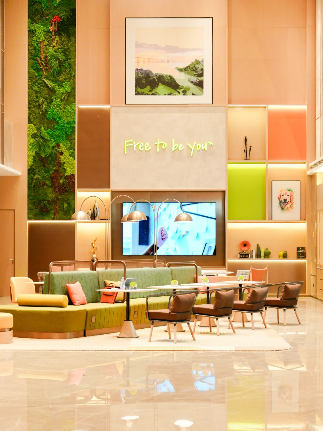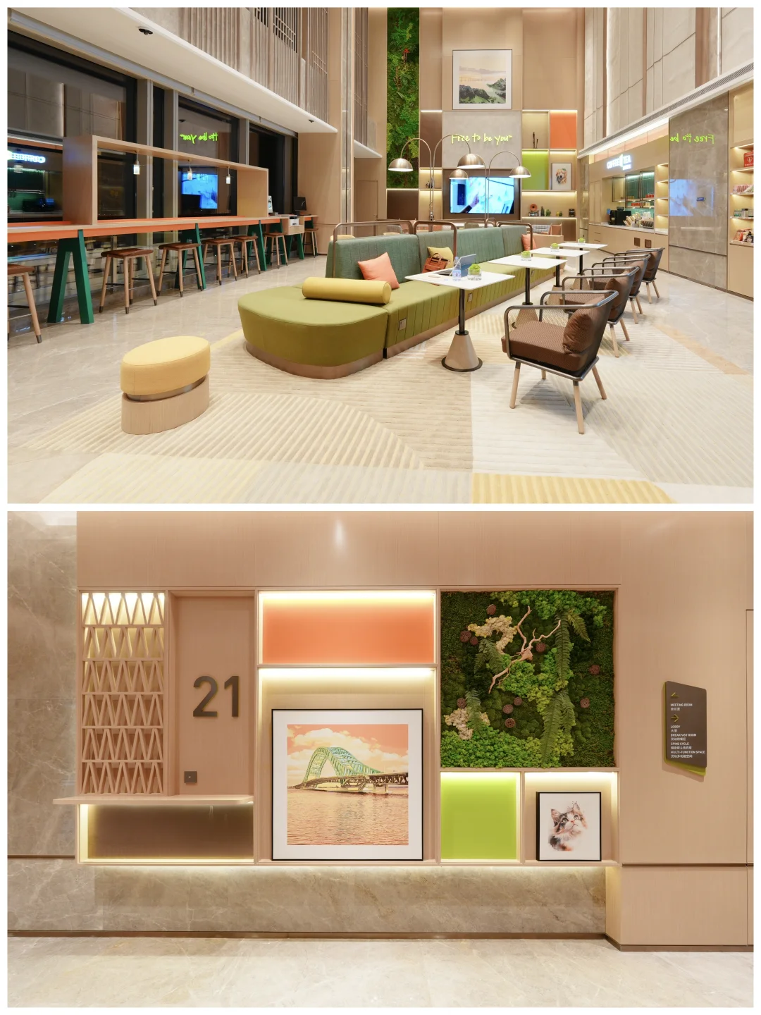 一进门就被大堂的设计吸引了!不是那种冷冰冰的豪华感,而是像一个大客厅,有沙发区、高脚椅区,氛围很轻松。办理入住时,前台小姐姐态度超nice,瞬间好感度UP!这里被称为 “绿洲大堂” ,真的能让人从疲惫中立刻放松下来。