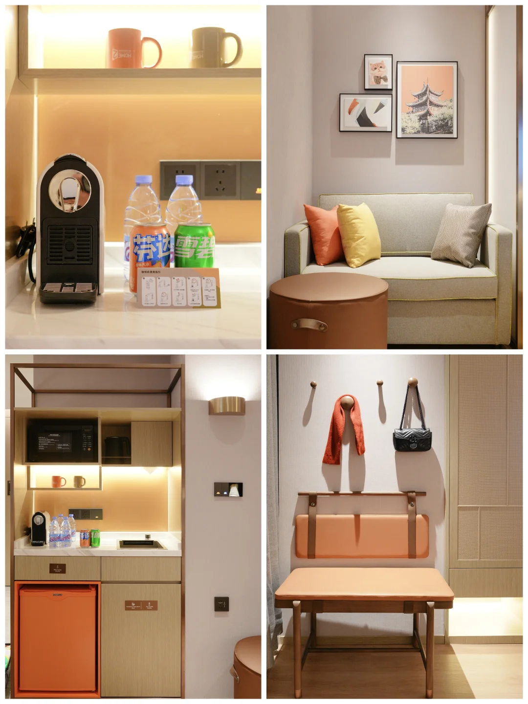 · 智能便利:配备了胶囊咖啡机,早起一杯醒神太重要了!还有微波炉和冰箱,买来的水果、夜宵都有地方放。