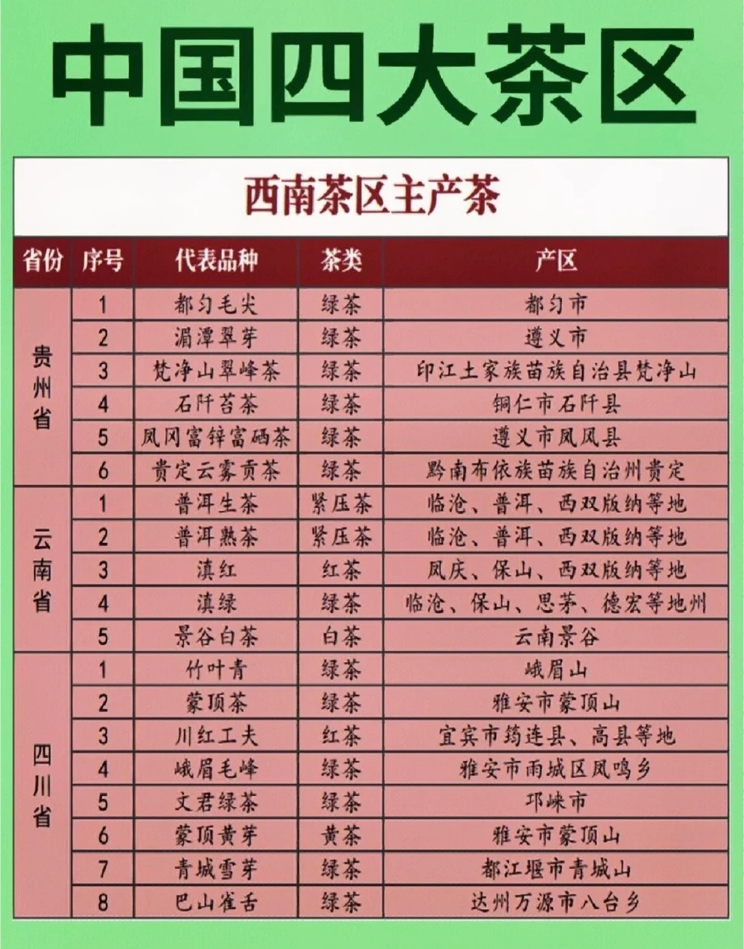 中国四大茶区分别在哪里,你知道吗?