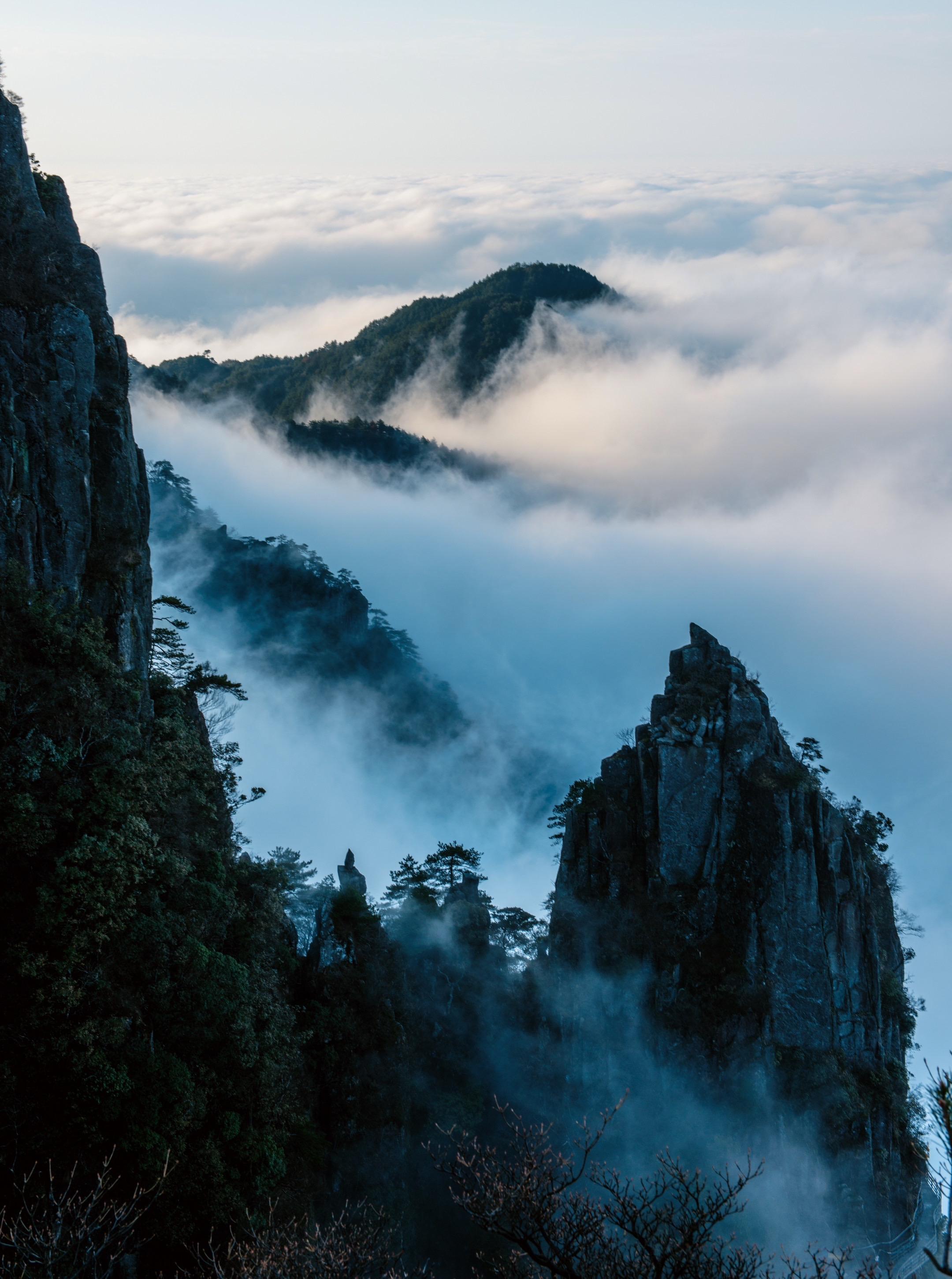1. 日月峰观景台:标准C位,前景开阔,日出时云海漫过山峰的经典画面就出自这里。