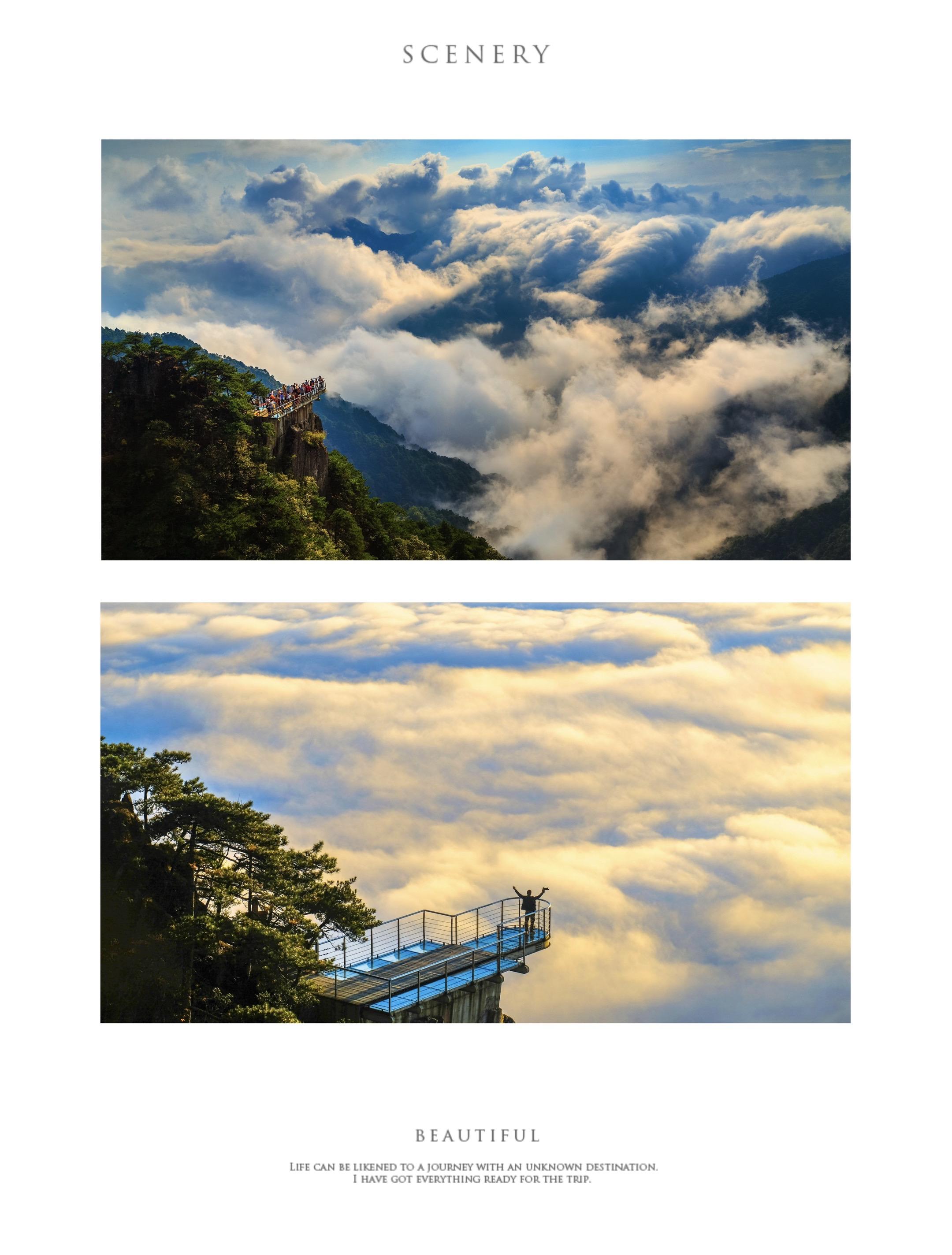 2. 凌云栈道拐角:以蜿蜒栈道为引导线,拍出人在云中走的意境视频。