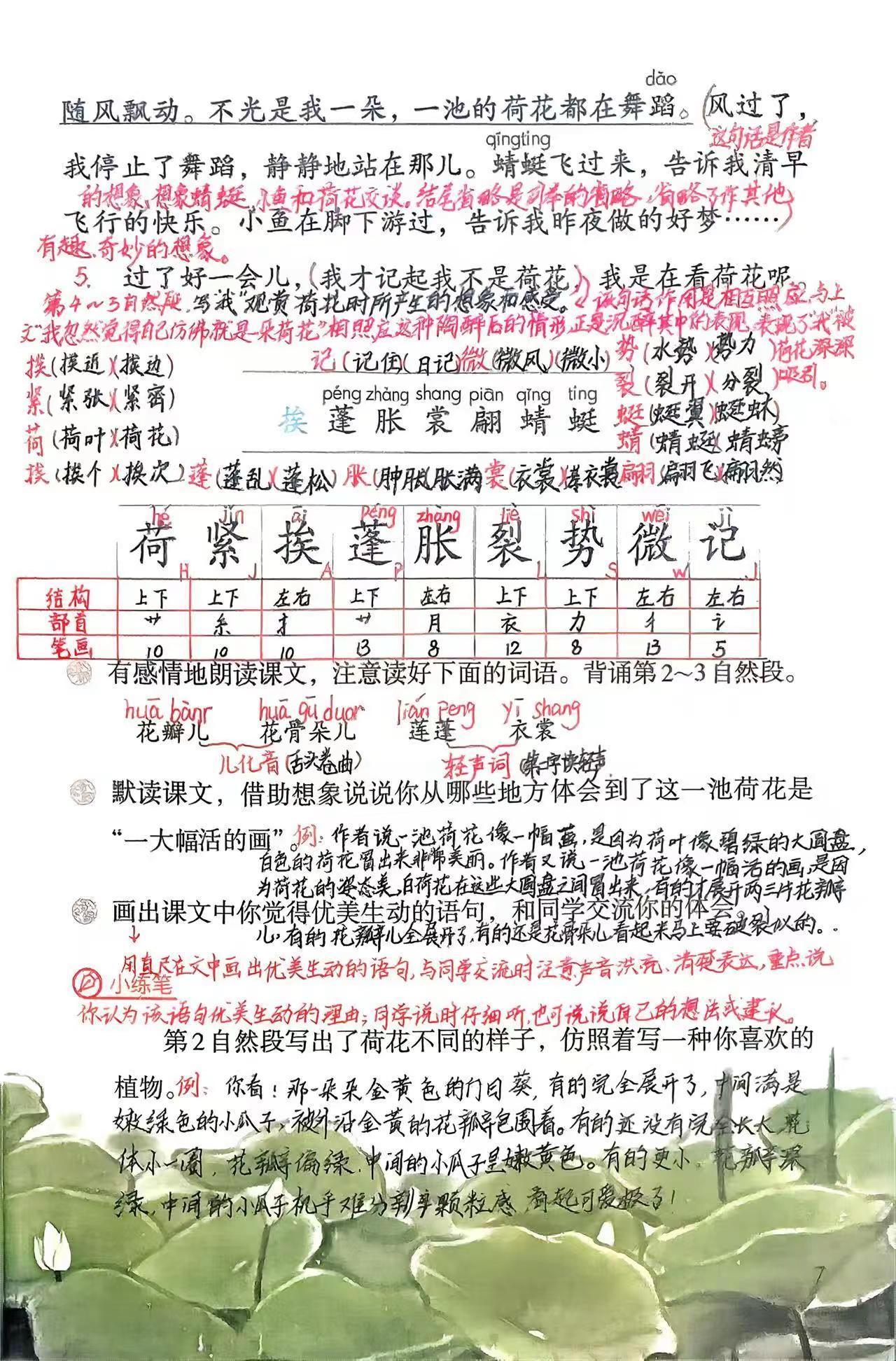新版三下语文第3课:《荷花》课堂笔记