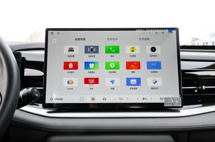 比较讨人喜欢的还有电子水晶挡把设计,触感清凉,观感较为晶莹,有很强的辨识度。至于车机配置,14.6英寸中控屏是标配,支持Carlink和Flyme link车机互联以及双音区语音识别控制,同时配有应用商店功能,可下载安装第三方应用软件,在功能性方面有较强的拓展性和可玩性,这一点在同价位SUV车型中比较难得。不过有些局限的是车机系统,目前仅支持适配魅族、安卓手机用户,并不支持苹果手机用户所依赖的CarPlay车机互联。