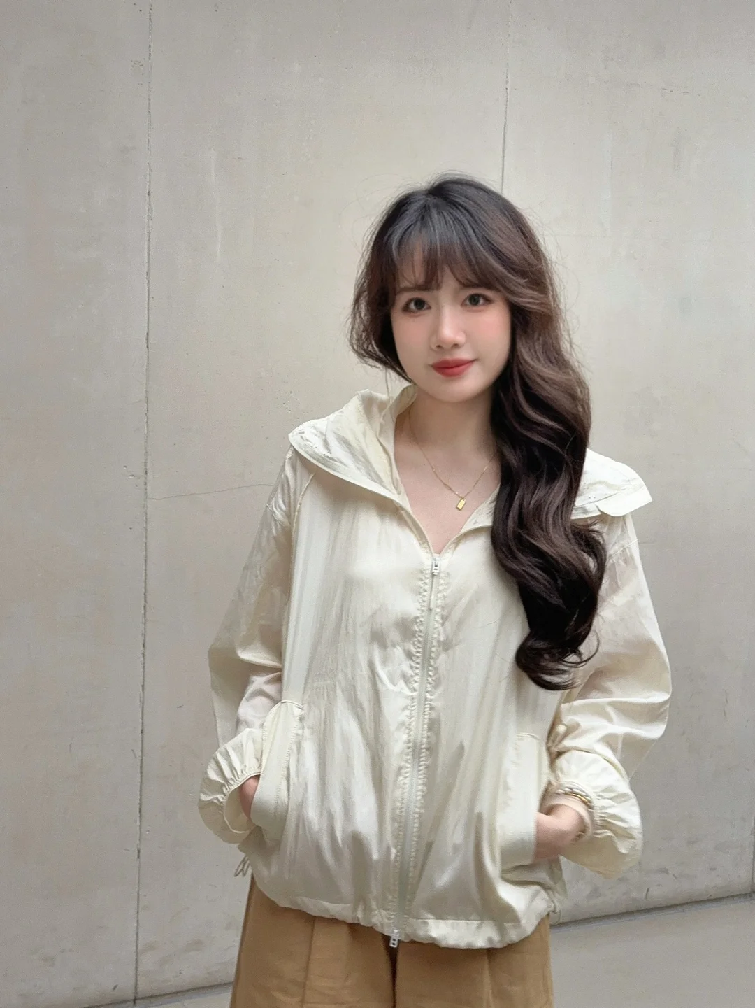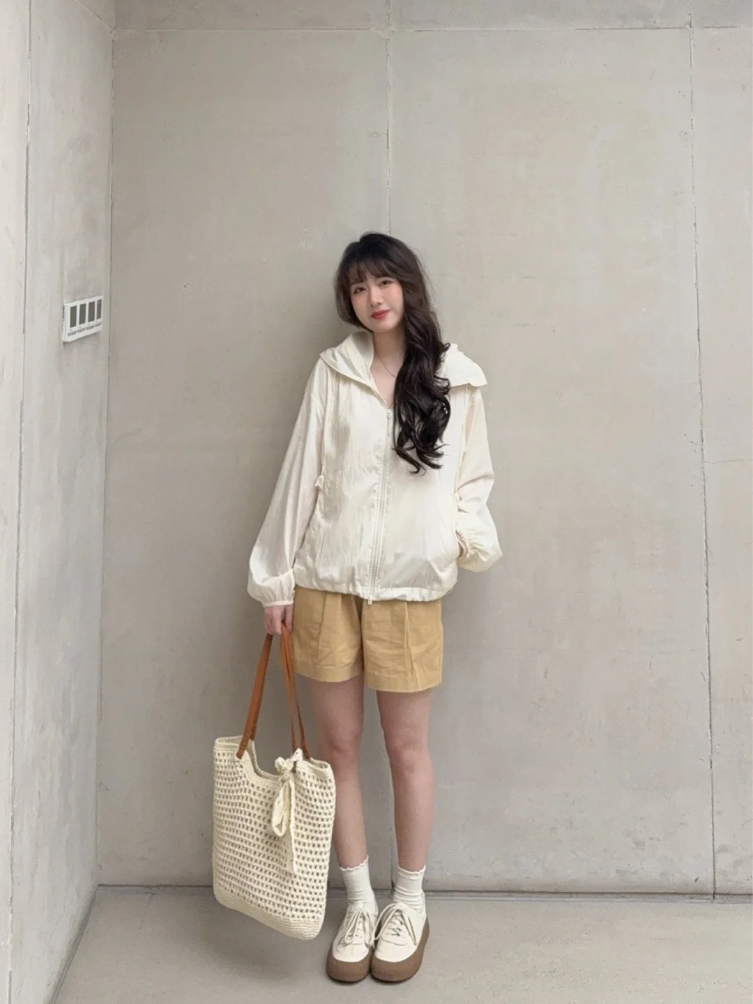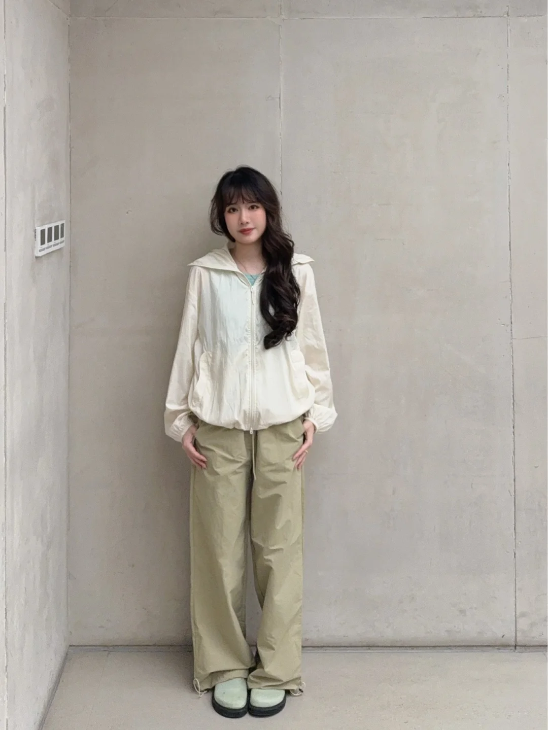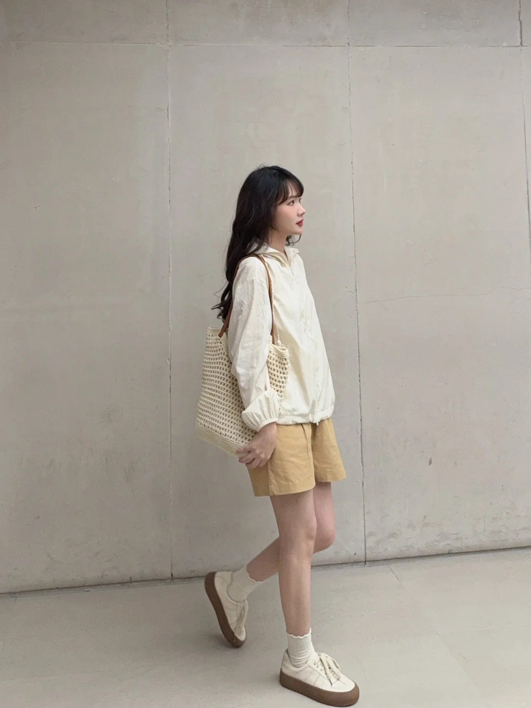 (不过米白色建议搭配棕色卡其色之类的暖色调 不太建议搭配纯白色 会有点点违和)