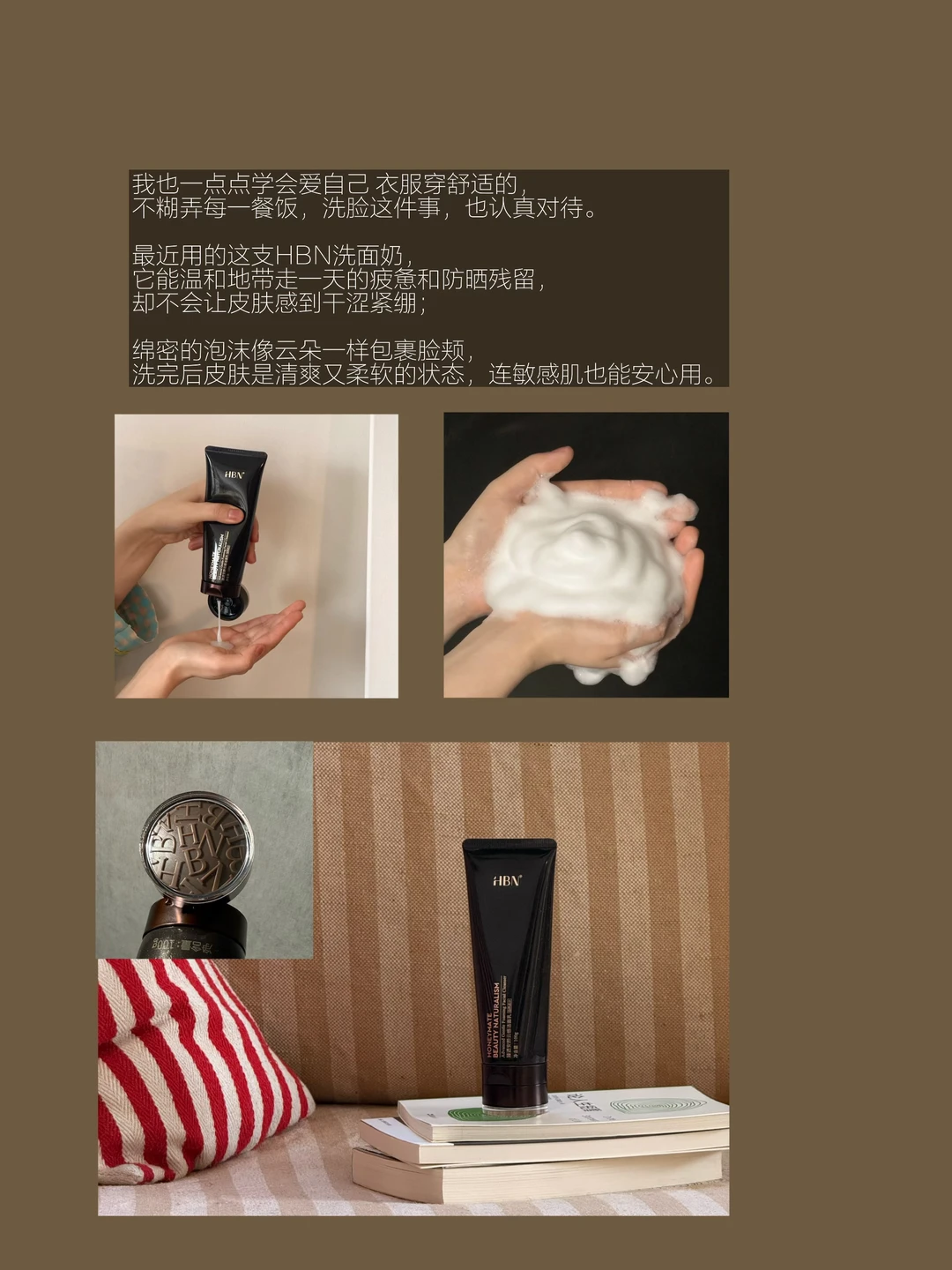 最近用的这支HBN氨基酸洗面奶,它可以细心地照顾好每一处使用细节,从兼具实用性和质感的包装,到完美平衡清洁力和温和度的SPA级洗感。温和地带走一天的疲惫和防晒残留,却不会让皮肤感到干涩紧绷,毛孔都能自由呼吸;绵密的泡沫像云朵一样包裹脸颊,结合淡淡的木质香氛味,是最适合的下班疗愈伙伴,洗后带给你清爽又柔软的皮肤状态,连敏感肌也能安心用。