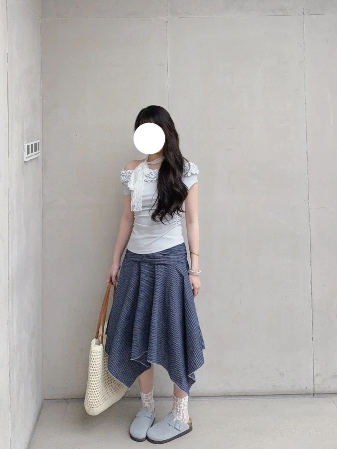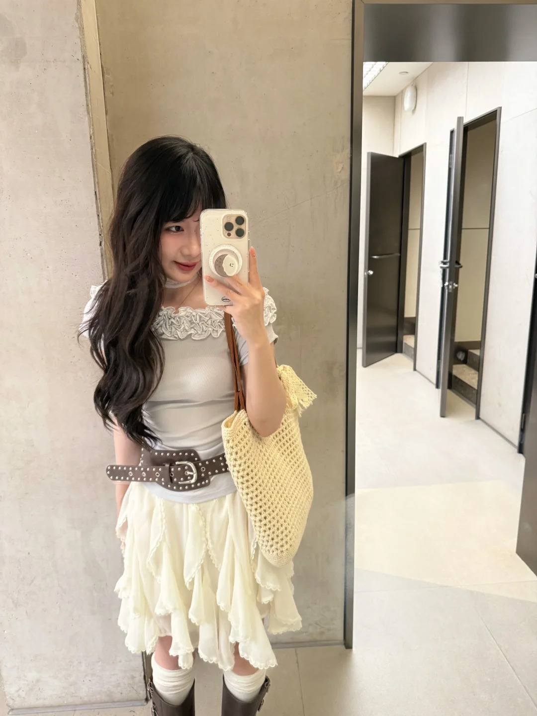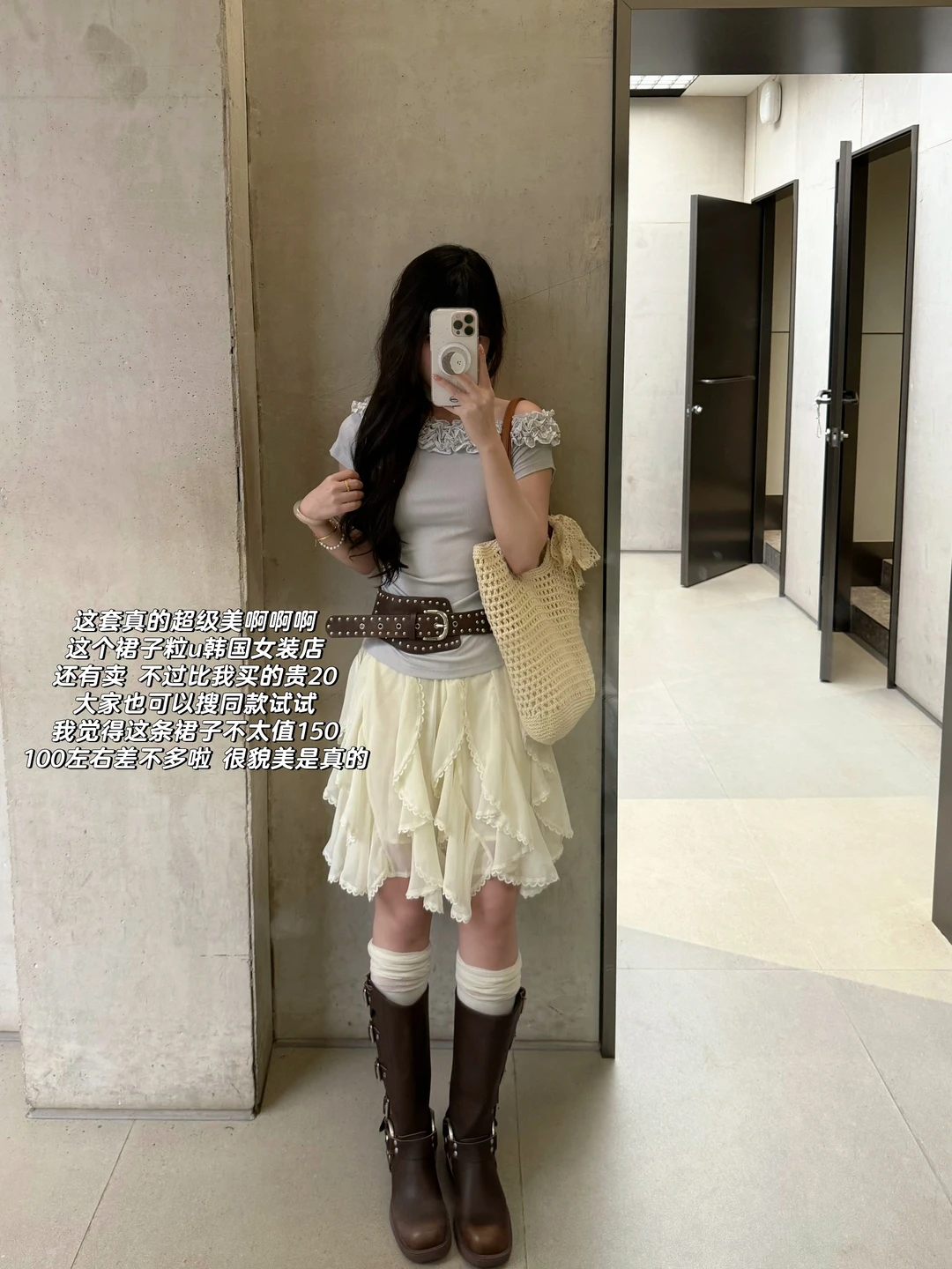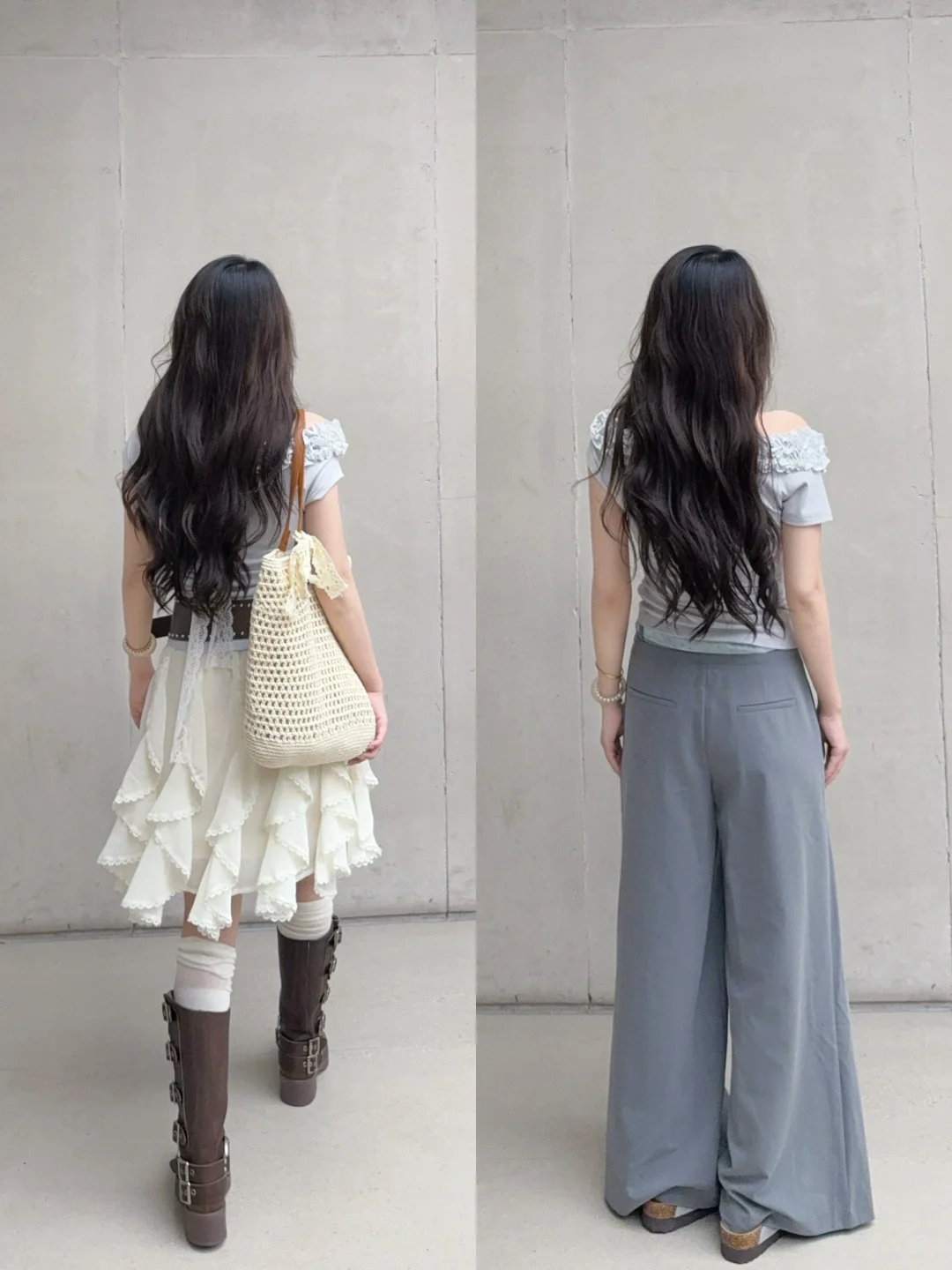 也可以搭配灰色有垂感的半裙或者牛仔裤