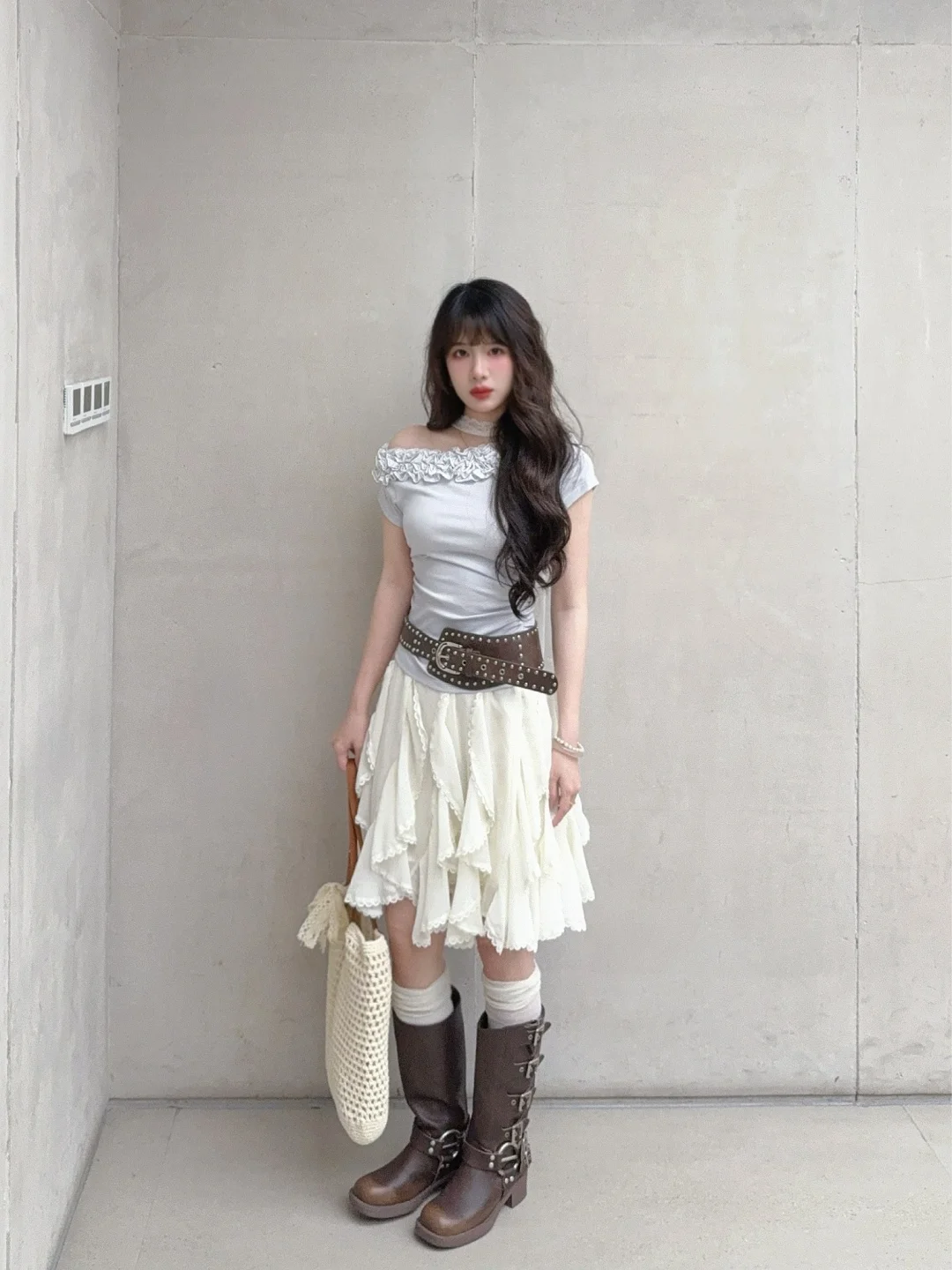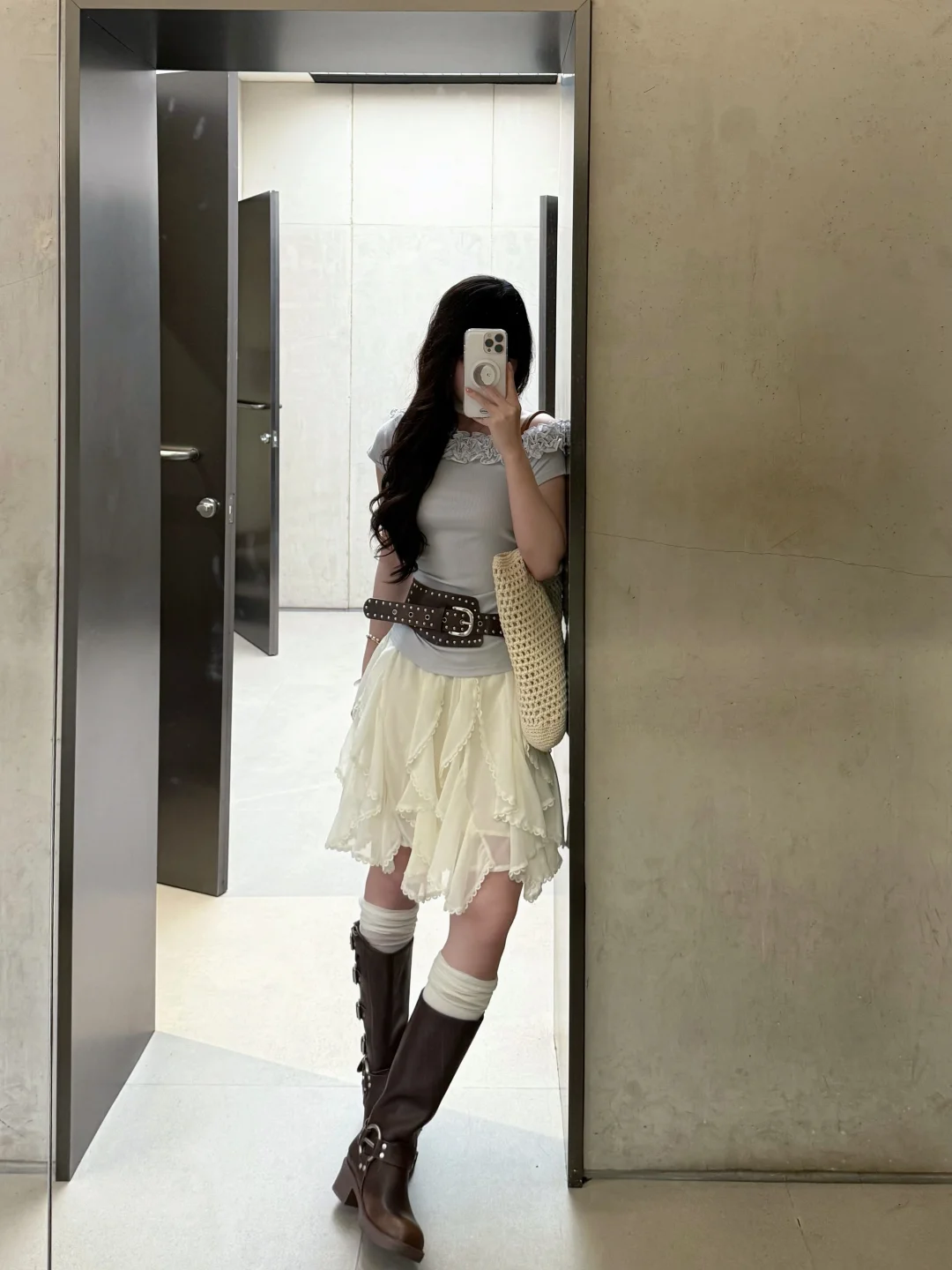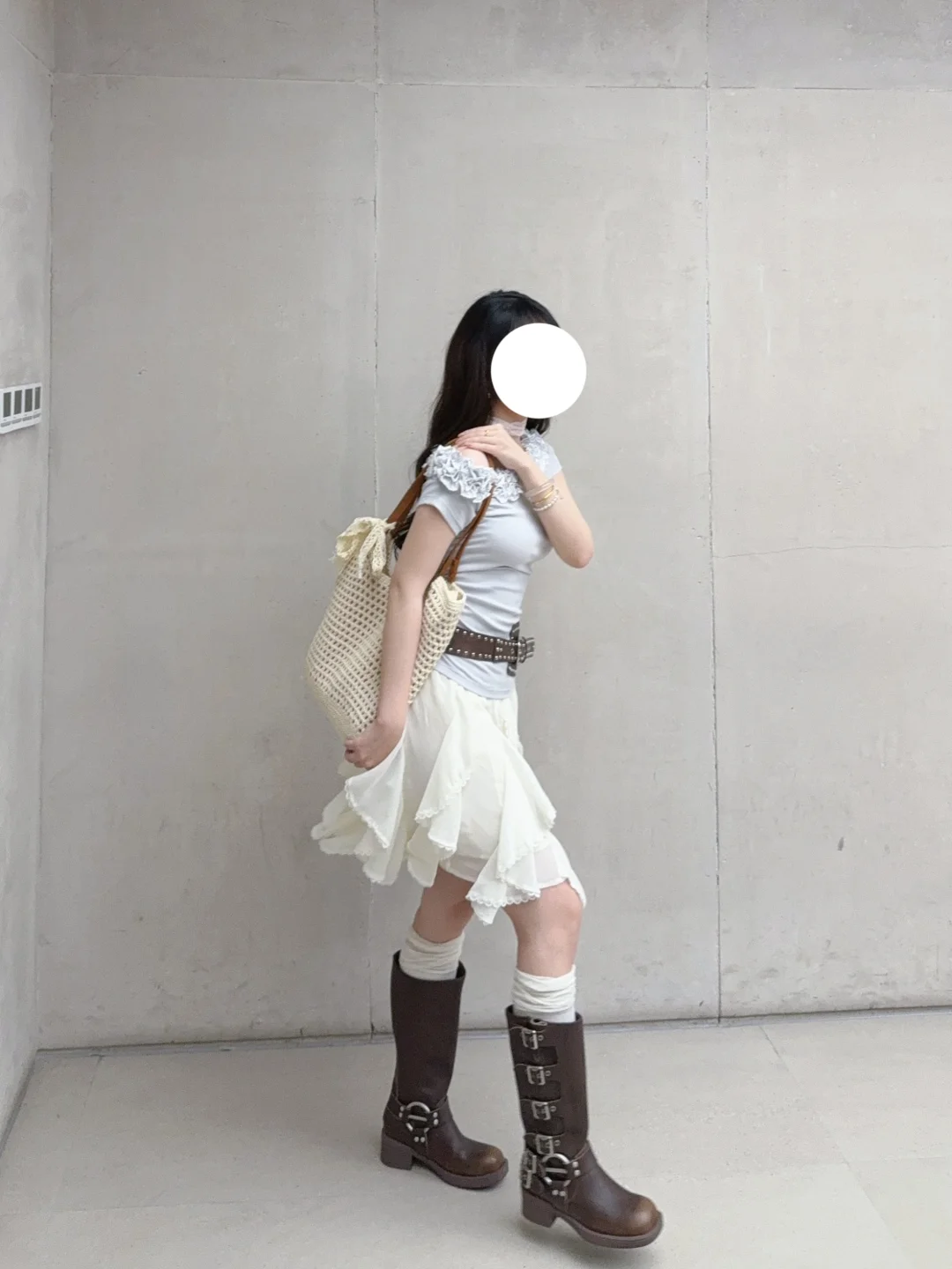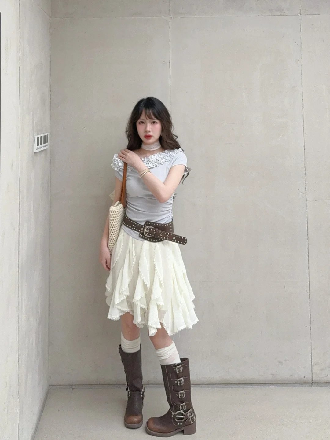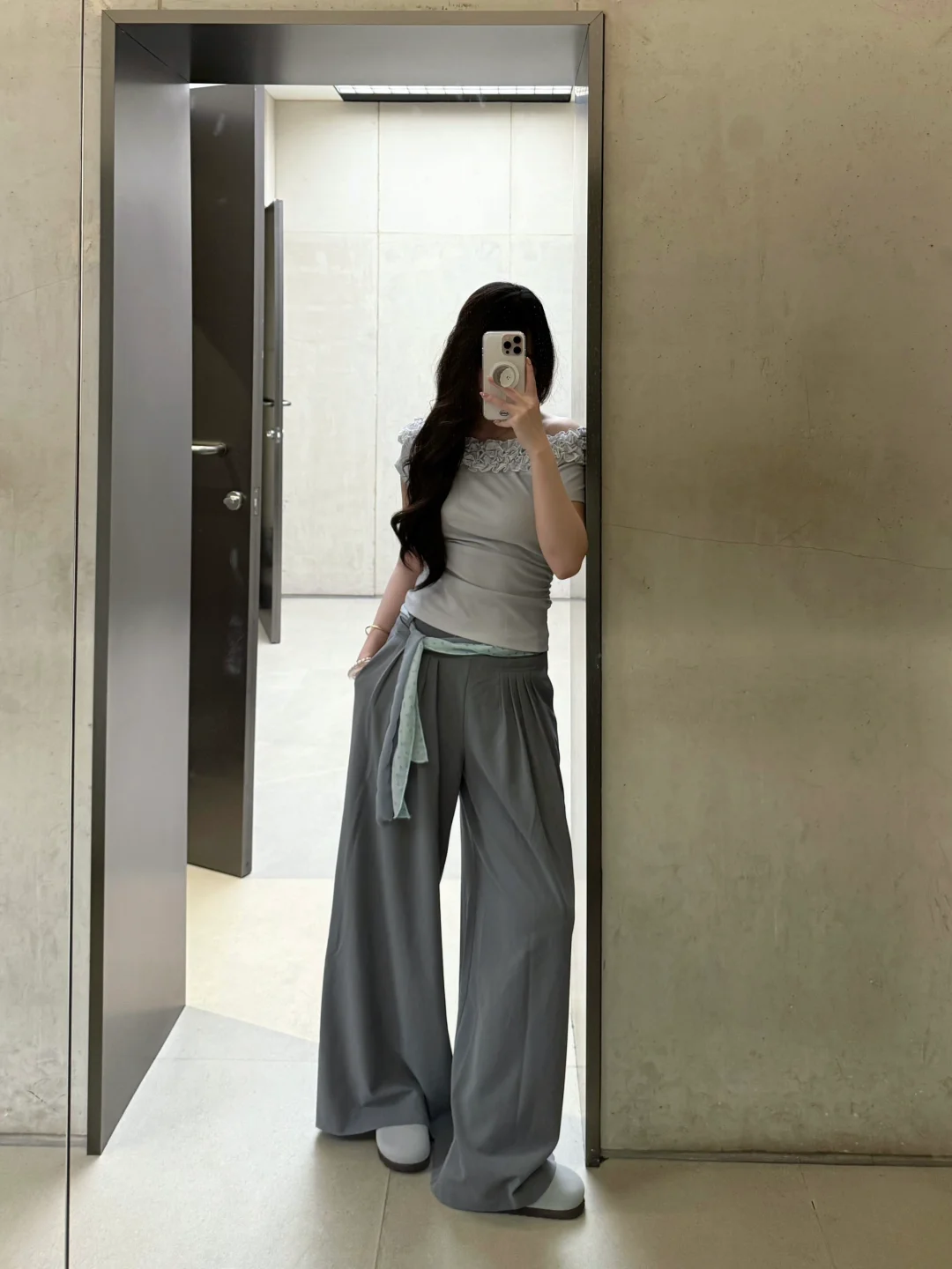 也可以搭配灰色有垂感的半裙或者牛仔裤