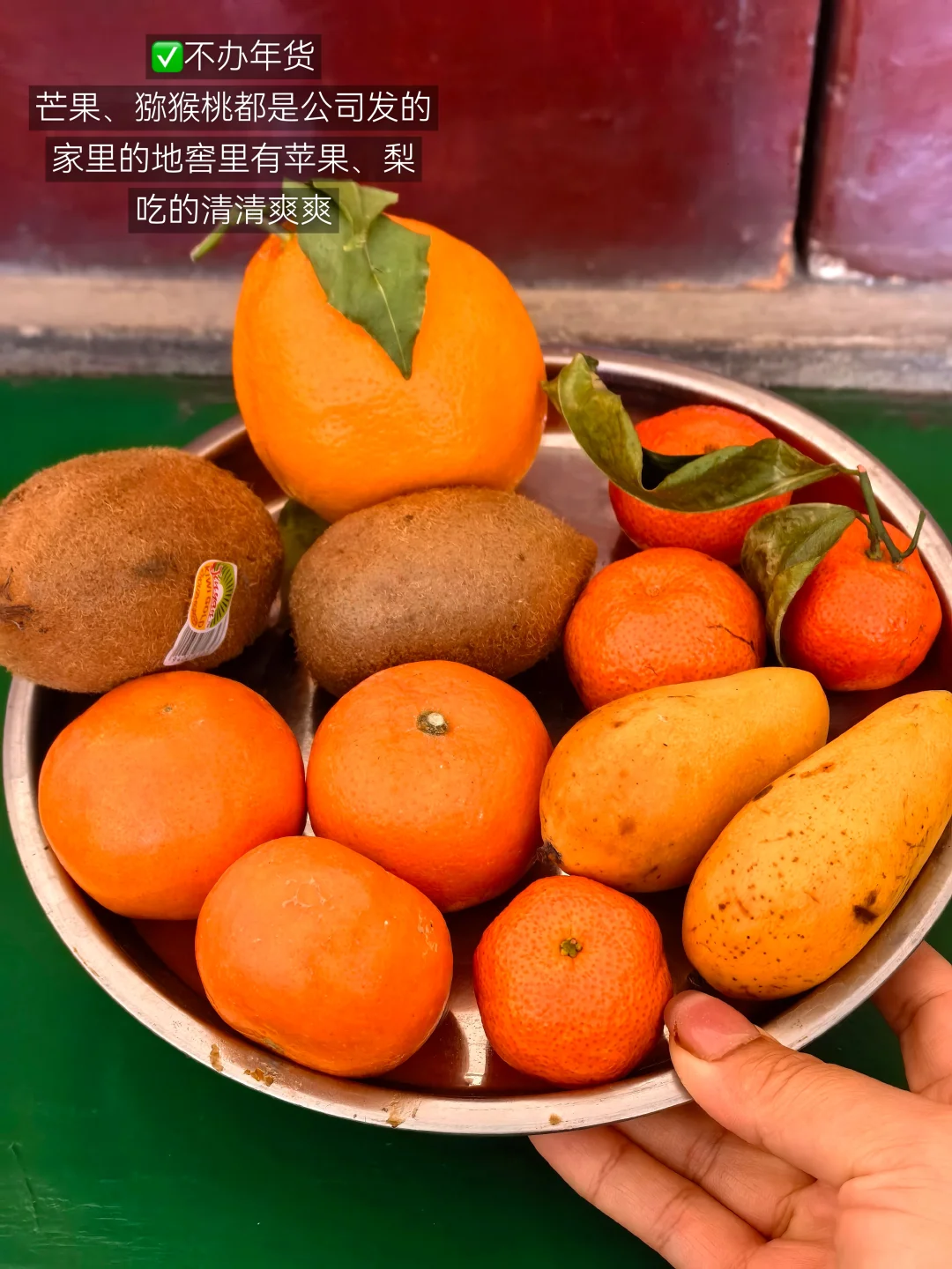 放假前,我们公司发了一箱耙耙柑,一箱猕猴桃,我在街上花了20元买了一大袋芒果和草莓,过年回家够吃了。