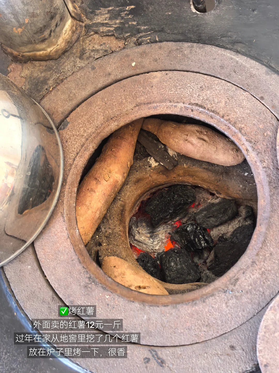 外面卖的12元一斤,我们家是炭火,过年在家,从地窖里挖几个红薯,放在炉子里,烤着,吃起来特别香。