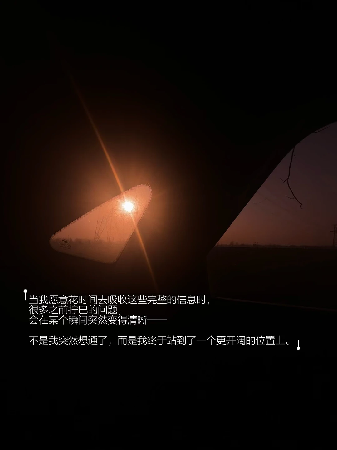 当我愿意花时间去吸收这些完整的信息时,很多之前拧巴的问题,会在某个瞬间突然变得清晰——不是我突然想通了,而是我终于站到了一个更开阔的位置上。