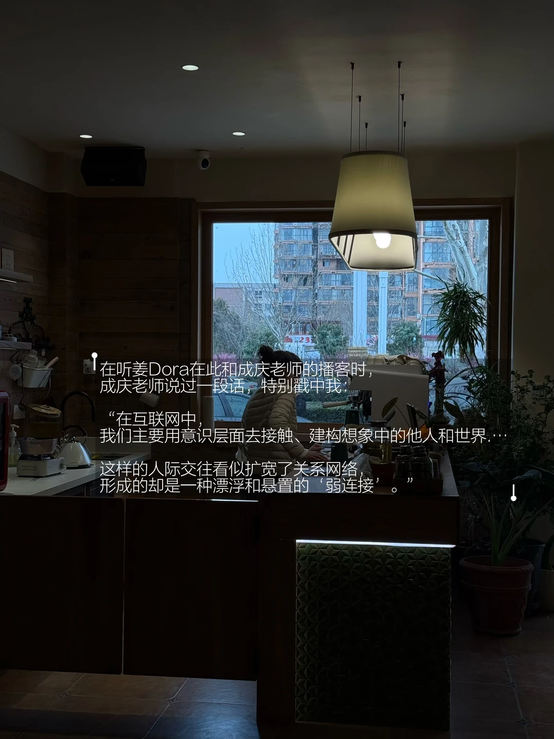 “在互联网中,我们主要用意识层面去接触、建构想象中的他人和世界……这样的人际交往看似扩宽了关系网络,形成的却是一种漂浮和悬置的‘弱连接’。”