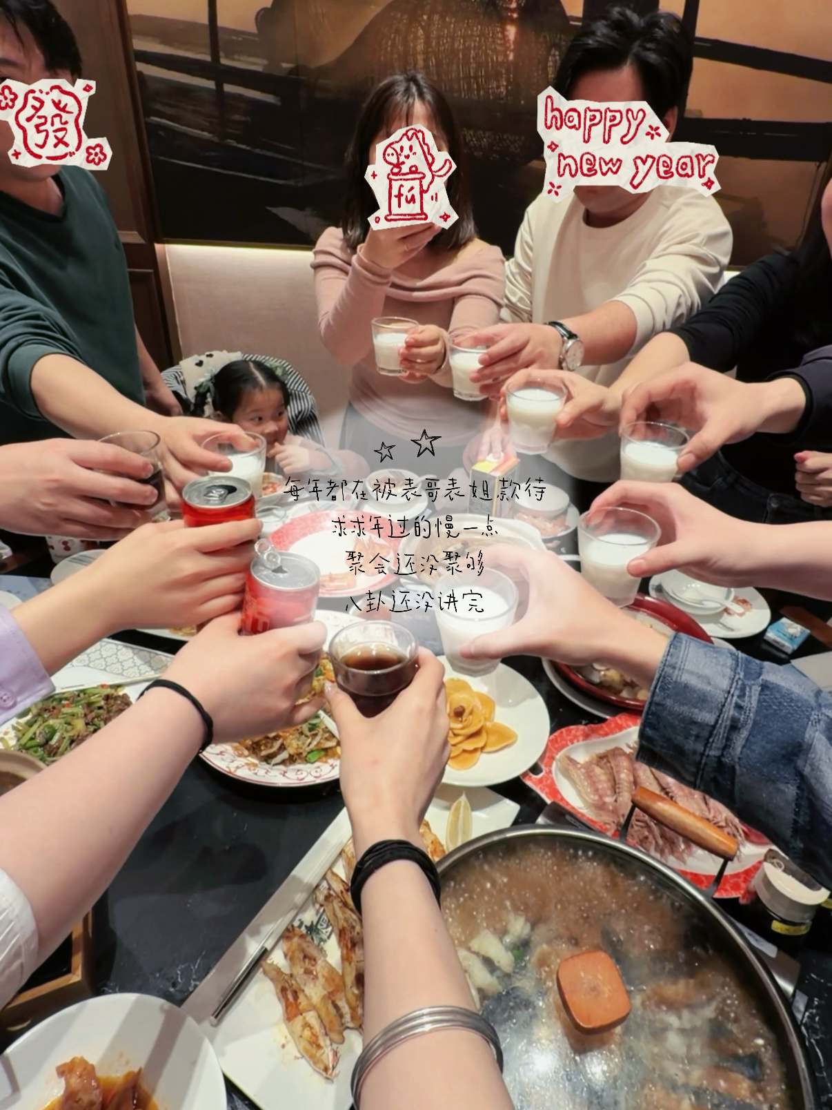对年的定义是团聚一次又一次得举杯欢祝新年快乐和远归的家人,和久久等候的长辈哪怕年