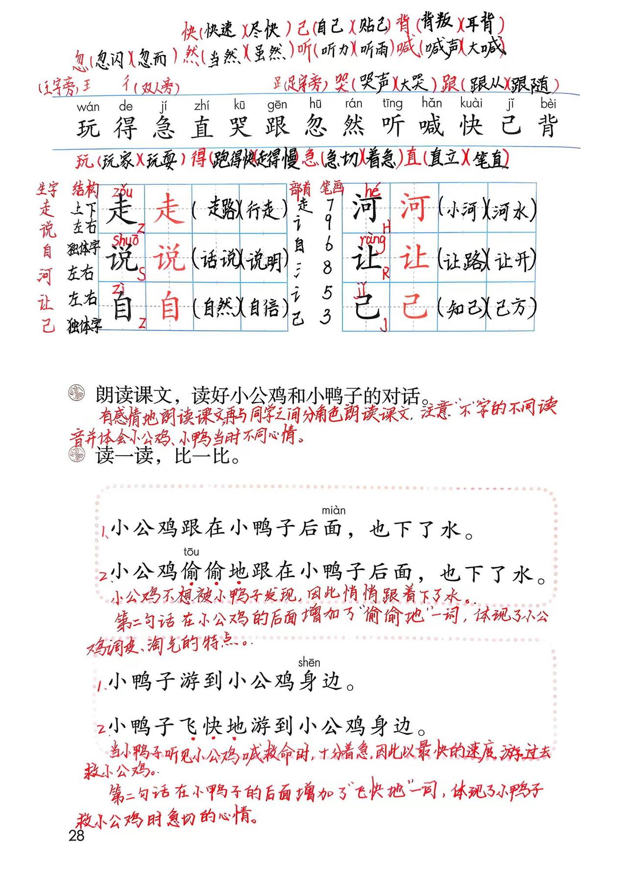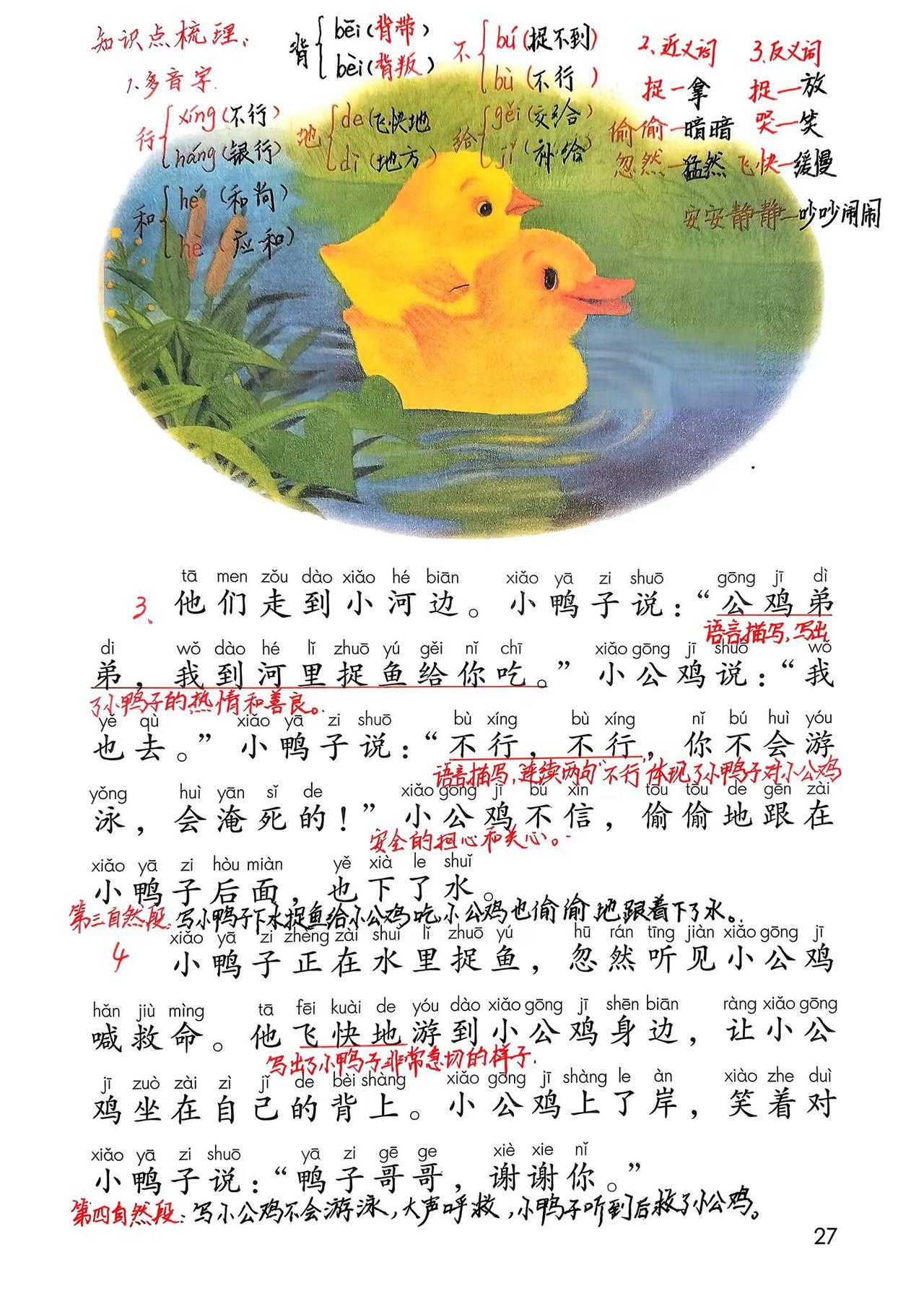 一下语文第4课:《小公鸡和小鸭子》笔记