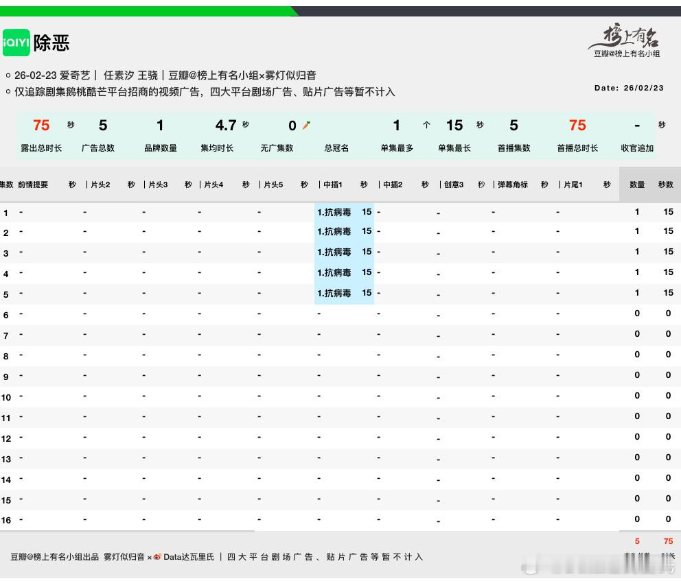 迷雾剧场招商已经不行了,首播6集每集1广,总时长75s