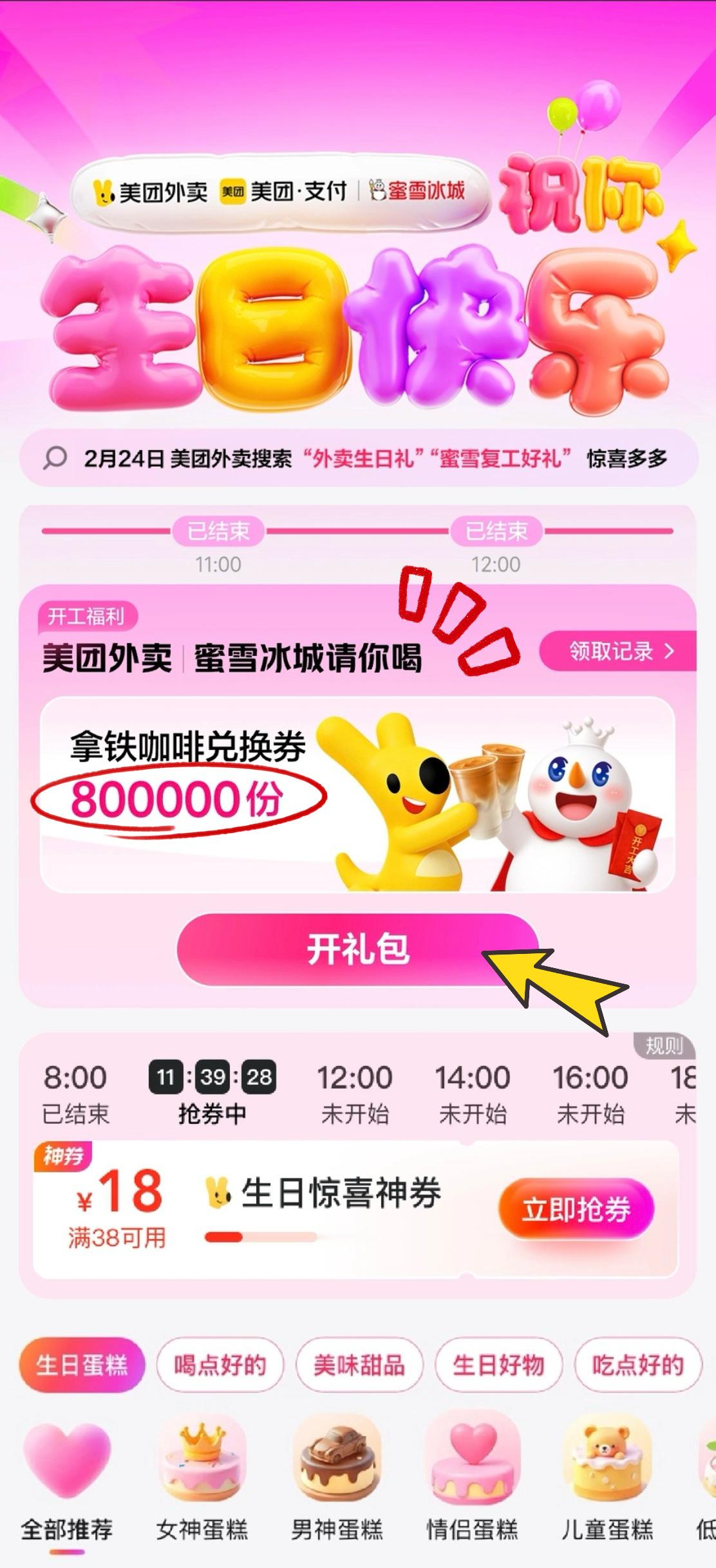 咖啡是打工人的吊瓶 生活有点苦,需要一点甜甜的咖啡因来治愈🌈复工第一天,美团外卖联合雪王送温暖啦!打开美团或美团外卖App搜【外卖生日礼】就能领蜜雪冰城免单。非2月生日的宝子们,上午场估计很多人都抢到了30万张咖啡免单券~2月生日的朋友看过来👏这一波直接宠幸到家!80万份免单福利直接领!这不仅仅是一杯咖啡,更是对生活的一点小确幸。喝完这杯“吊瓶”,又是元气满满的打工人!☀️别睡了,闹钟定起来,为了这杯免费的拿铁,冲鸭!