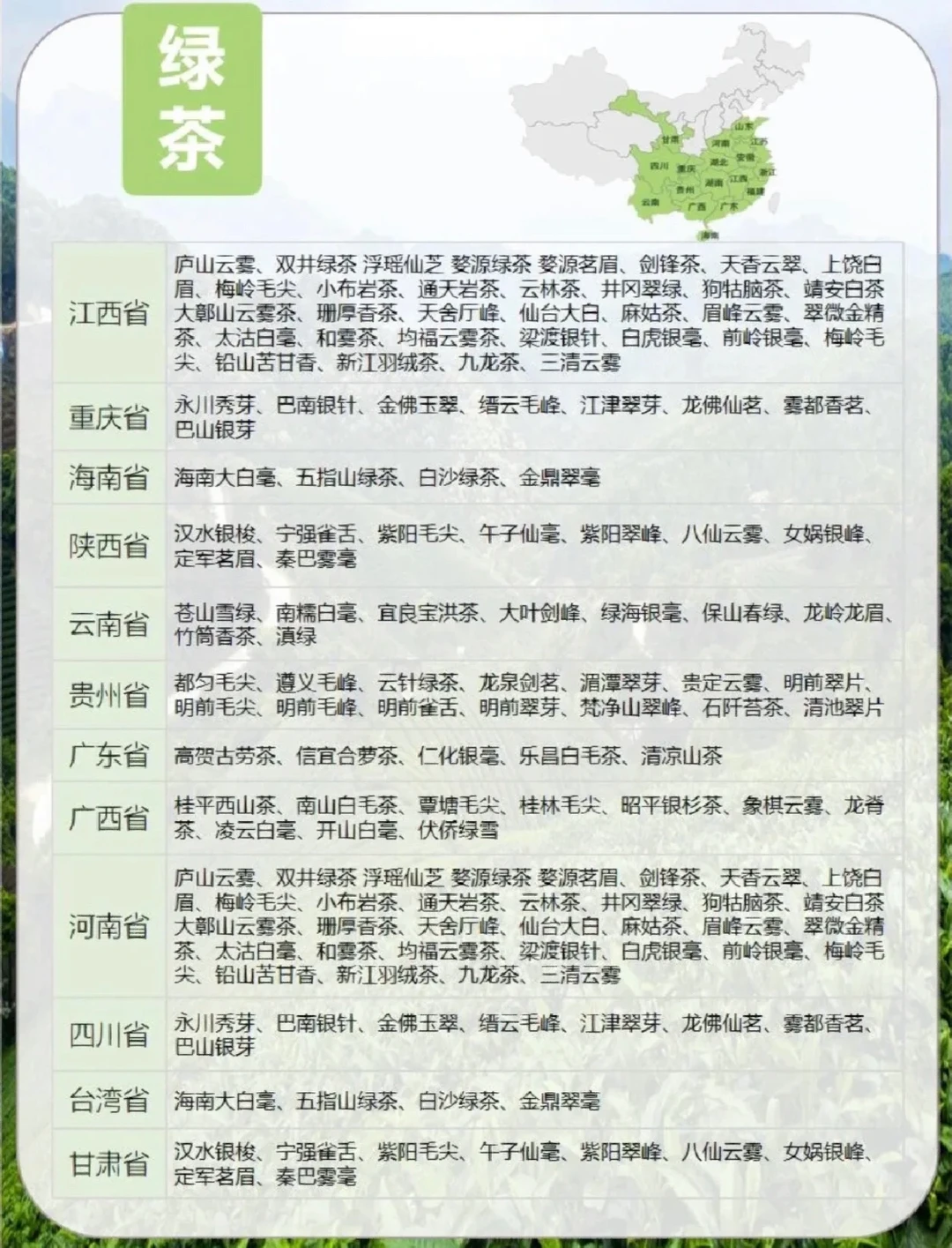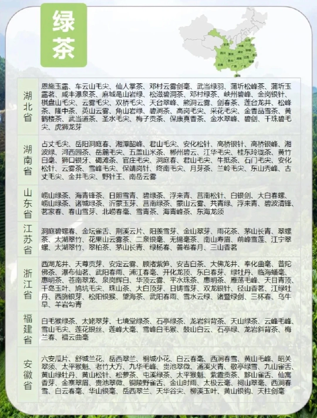 全国各省产茶最全名录,茶人必备!