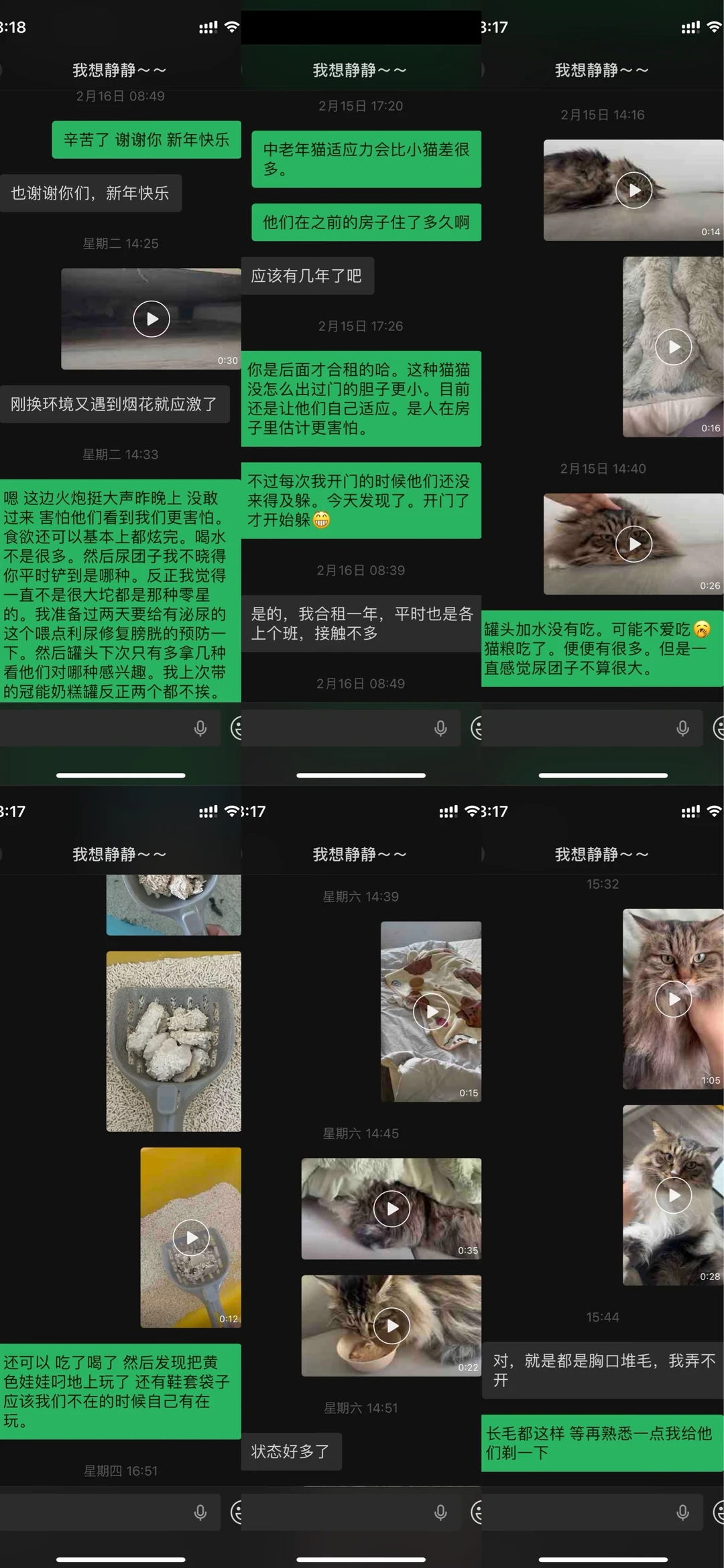 2/23日带上了梳子终于可以对他们下手了。长毛真的太容易打结了🥹这也是半个月来第一次那么亲密的互动。主人说幺鸡胆子大一点自来熟。然后我关注下来发现幺鸡胆子太小了。反而有基础病的二条相对胆子大一些。
