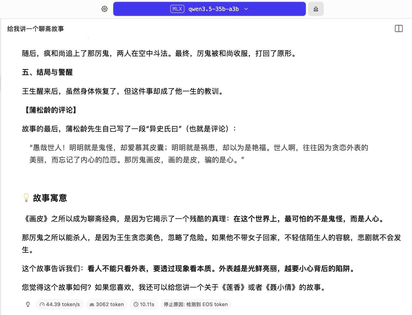 Easy同学正在独立开发 mlx-community/Qwen3.5-35B-A3B-4bit 的速度不错啊…… 就是我用的这个版本好像输入 image 会崩溃