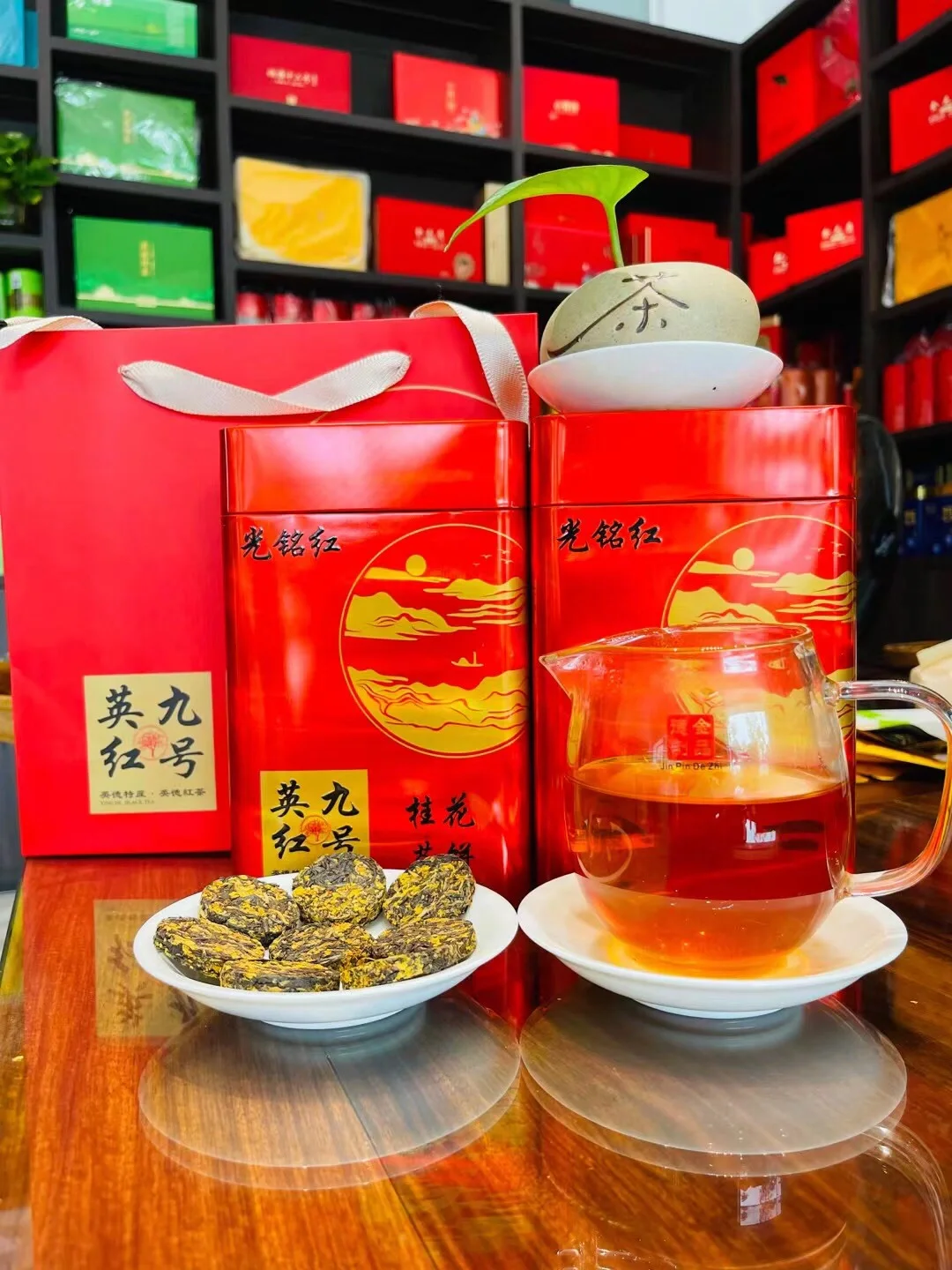 桂花+特级英九=融合一起,汤色红艳明亮,醇香味好-提神醒脑-清除口臭-止咳化痰