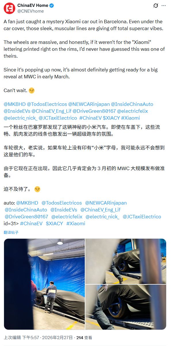 他们认为,小米新车在这个时间点出现在西班牙,很有可能是为了即将开幕的MWC2026准备大招,值得期待。IT之家后续将保持关注。