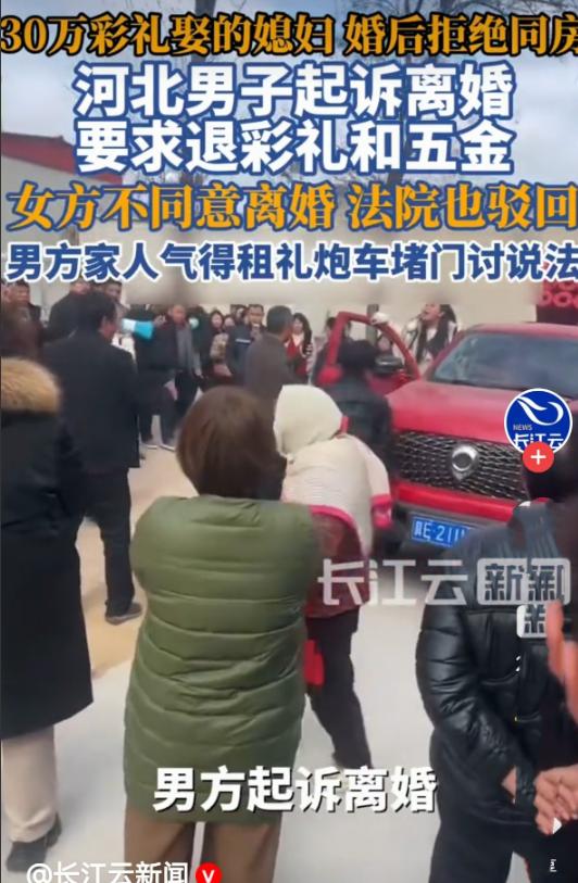 “这脸丢大了!” 河北邢台,男子花三十多万彩礼娶了媳妇,结果结婚两年,妻子一直拒绝同房。这婚结的,真是憋屈。 事情是这样的。一个94年的小伙,家里着急他的婚事。经媒人介绍,认识了隔壁村一个小他5岁的姑娘。两人看着都满意,很快就把婚事定了下来。 女方要了20多万彩礼,加上买五金首饰、新手机,前前后后花了男方家30多万。相处三个月后,两人在2024年2月领证结婚了。 可婚后日子完全不是想象的那样。男方说,妻子一直拒绝和他同房,两人长期分房睡,婚姻有名无实。他觉得自己掏空家底,却过不上正常日子,越想越窝火。 调解几次都没用,男方一怒之下,在2025年4月把女方告上法院,要求离婚,并要求女方退回30多万的彩礼和物品。 但女方坚决不同意离婚。她说男方说的“拒不同房、分房住”都是假话,两人一直在一起生活,感情没破裂。她还说自己被男方打骂,患上了抑郁症,住院治疗过。彩礼钱早就用于买陪嫁、日常开销和看病,花完了,没法退。 法院审理后认为,男方想离婚,必须拿出感情破裂的确凿证据。因为男方拿不出证据,女方又不同意离,一审判决驳回了男方的离婚请求。 这个判决让男方一家彻底崩溃了。他们觉得女方就是不想退钱,故意拖着。30多万可能打水漂,人财两空。 今年大年初六,男方家属忍无可忍,租了一辆礼炮车,开到女方娘家村口,用大喇叭反复喊话,说女方“骗婚”、“结婚拒同房”,还开直播把事情闹到网上。连续闹了好几天,引来大量村民围观。 女方家被围得水泄不通,家人不敢出门,说遭到网暴,生活被打乱。她们把法院判决书贴出来,证明自己没骗婚,并寻求政府帮助,要求对方删除视频、道歉。 有网友认为,这明显是骗婚,同房不同房可以医学验证,男方不会无故闹事。也有网友觉得,法院判决不公,女方同意结婚却拒绝履行夫妻义务,就是有问题。 说到底,这事闹到这一步,双方都难看。婚姻的基础是感情和责任,如果一开始就动机不纯,或者婚后无法磨合,用法律和极端手段都难解。 对此,你怎么看?
