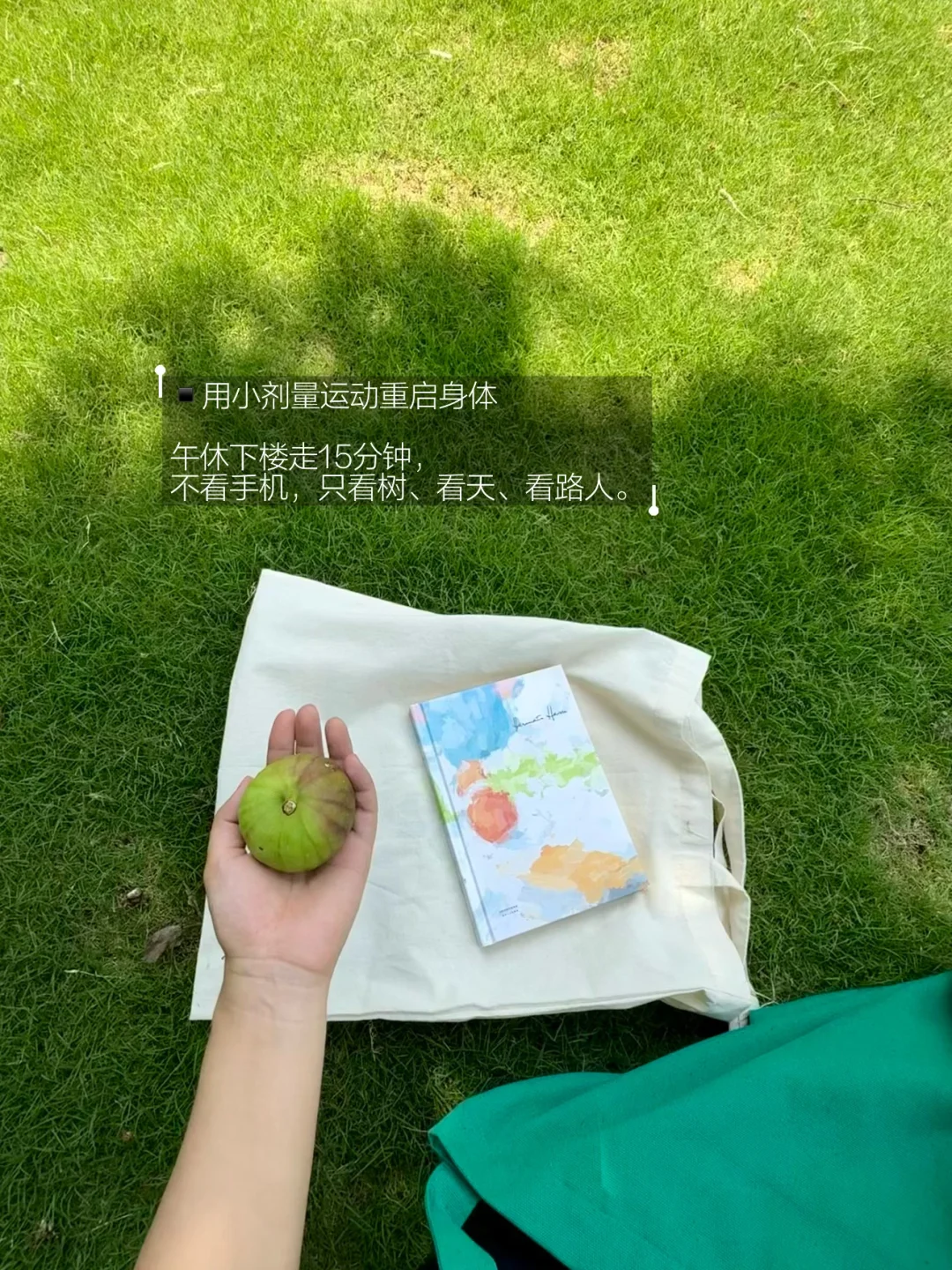午休下楼走15分钟,不看手机,只看树、看天、看路人。