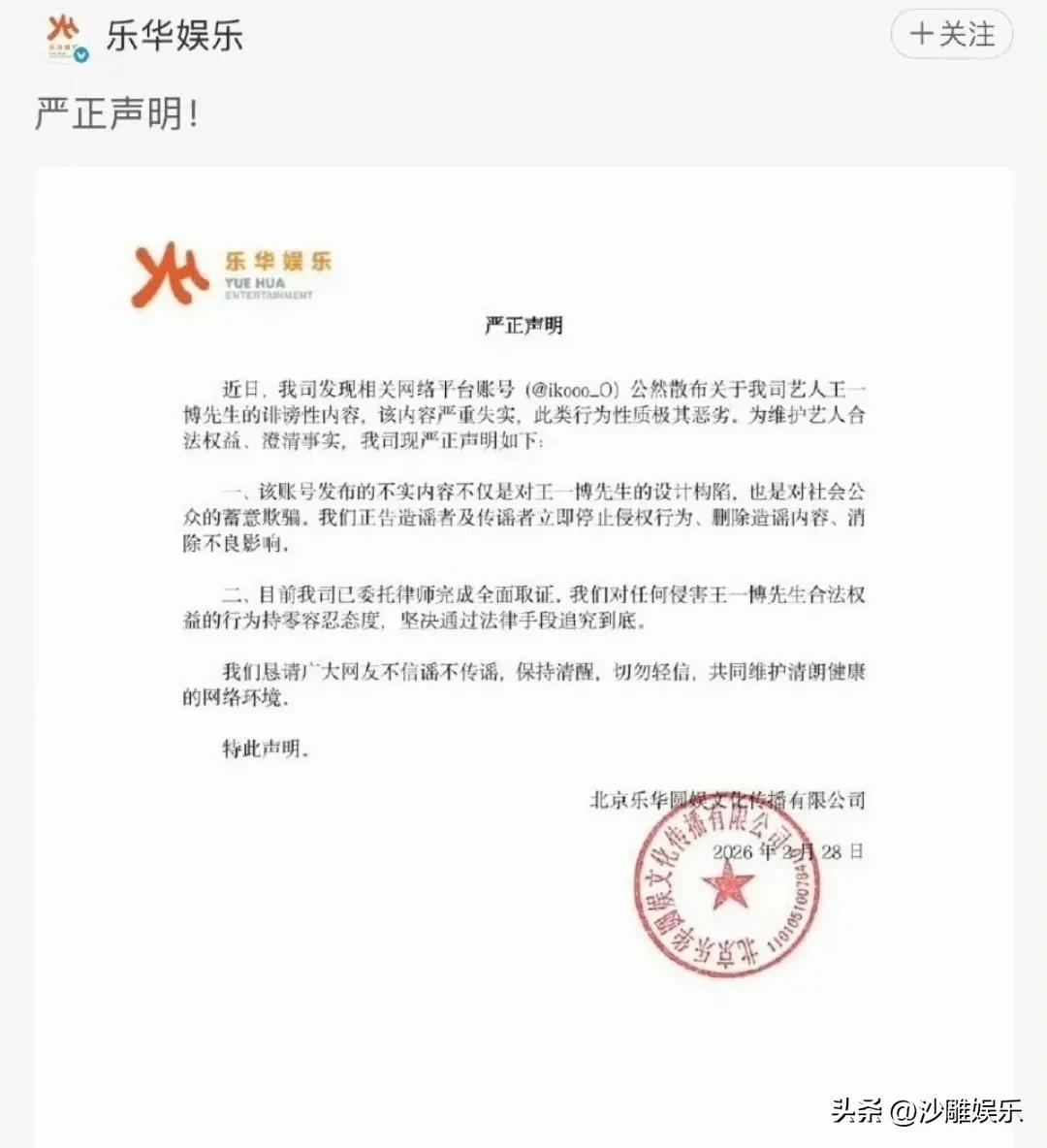 王一博“私密聊天”曝光? 2月28日,一看热搜爆了,标题写着“王一博私人聊天记录曝光”,里面充斥着对当红艺人的吐槽和所谓的“京圈恋情”,火药味十足。但仔细扒完来龙去脉,心里只剩一阵恶寒——这哪是什么聊天记录,分明是一场利用公众猎奇心理的精准“设局”。 这出戏的剧本,本身就写满了“假”字 造谣者盗用了王一博2019年就废弃的老手机号,自导自演在小红书编造对话。可笑的是,在首次发布录屏时,因为太过着急,居然连自己真实的身份证信息都没打码,直接暴露在几千万网友面前。用网友的话说:“这属于是‘自爆式’碰瓷。” 再看内容细节,聊天记录里频繁使用“笑鼠”、“已阅”这类网络口癖。但凡追过他的摩托姐姐都知道,王一博私下聊天是个连表情包都懒得找的“直球选手”,这种浓浓的“姐妹茶话会”画风,简直是把他的人设按在地上摩擦。 比谣言更伤人的,是那种“无成本”的恶意 最让我感慨的是,乐华娱乐这次的反应极其迅速,直接盖公章声明“零容忍”。但即便法律能追责,那些飘在空中的恶意中伤,真的能随着一纸声明烟消云散吗? 这不仅是一个顶流面对的非议,更是一个普通人在信息时代无处遁形的缩影。一个6年前就被迫停用的号码,如今还能被翻出来当作伤人的凶器。在这个截图可以伪造、记录可以拼凑的年代,我们都可能是那个“百口莫辩”的王一博。 不信谣不传谣,让子弹飞一会儿,是对真相最大的尊重,也是我们对这个嘈杂世界最大的善意。