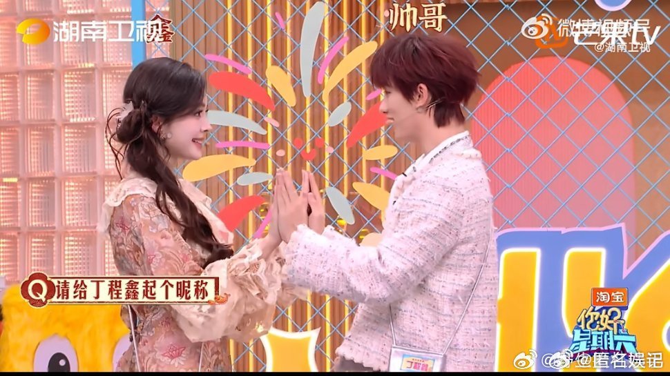 娜扎丁程鑫姐弟对视好养眼你好星期六少年与美女同框,对视瞬间温柔又有力量,气质和谐