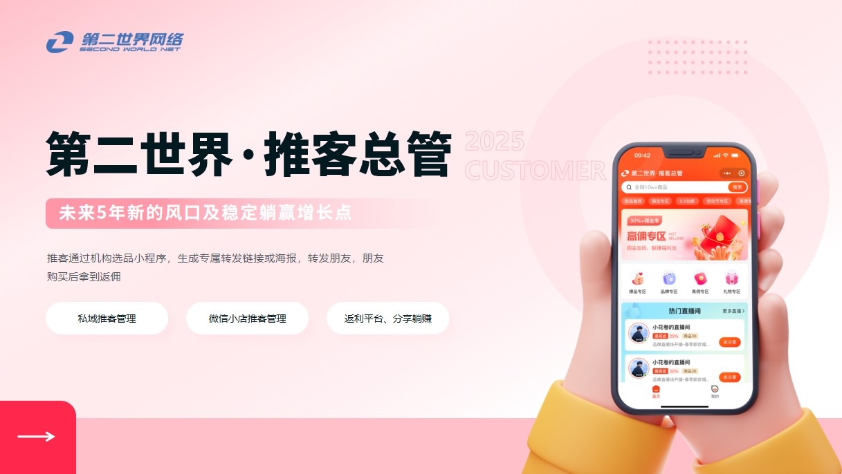 微信小店推客系统凭借其庞大的用户基础、强大的生态融合优势、低运营成本与高盈利空间以及政策支持与行业发展趋势的双重利好,成为 2025 年服务商不容错过的风口。对于有远见的服务商而言,现在正是抢占先机、布局这一领域的最佳时机。通过积极投身于微信小店推客系统的运营与服务,不仅能够为商家创造价值,助力其实现业务增长,更能够在这一新兴市场中,实现自身的商业价值与可持续发展。