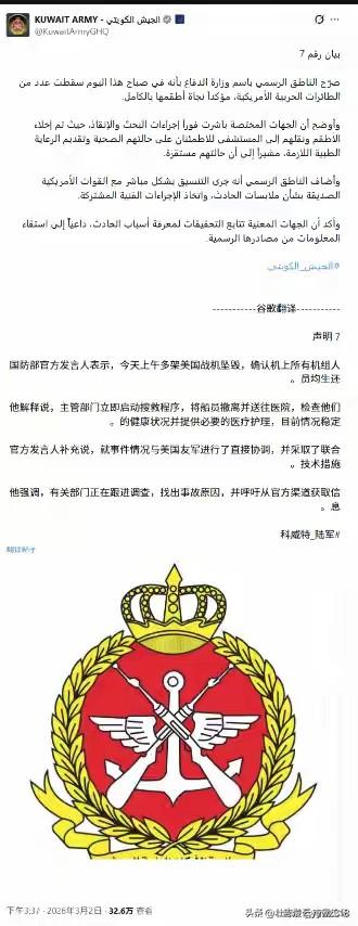 境内有美军战机坠毁,机组人员全部安全,状态稳定。