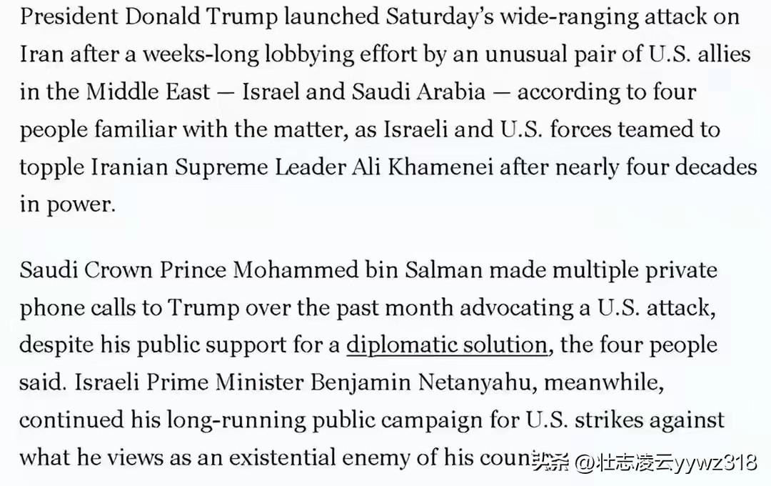 说美国对伊朗采取相关行动,是被以色列和沙特一起劝的,