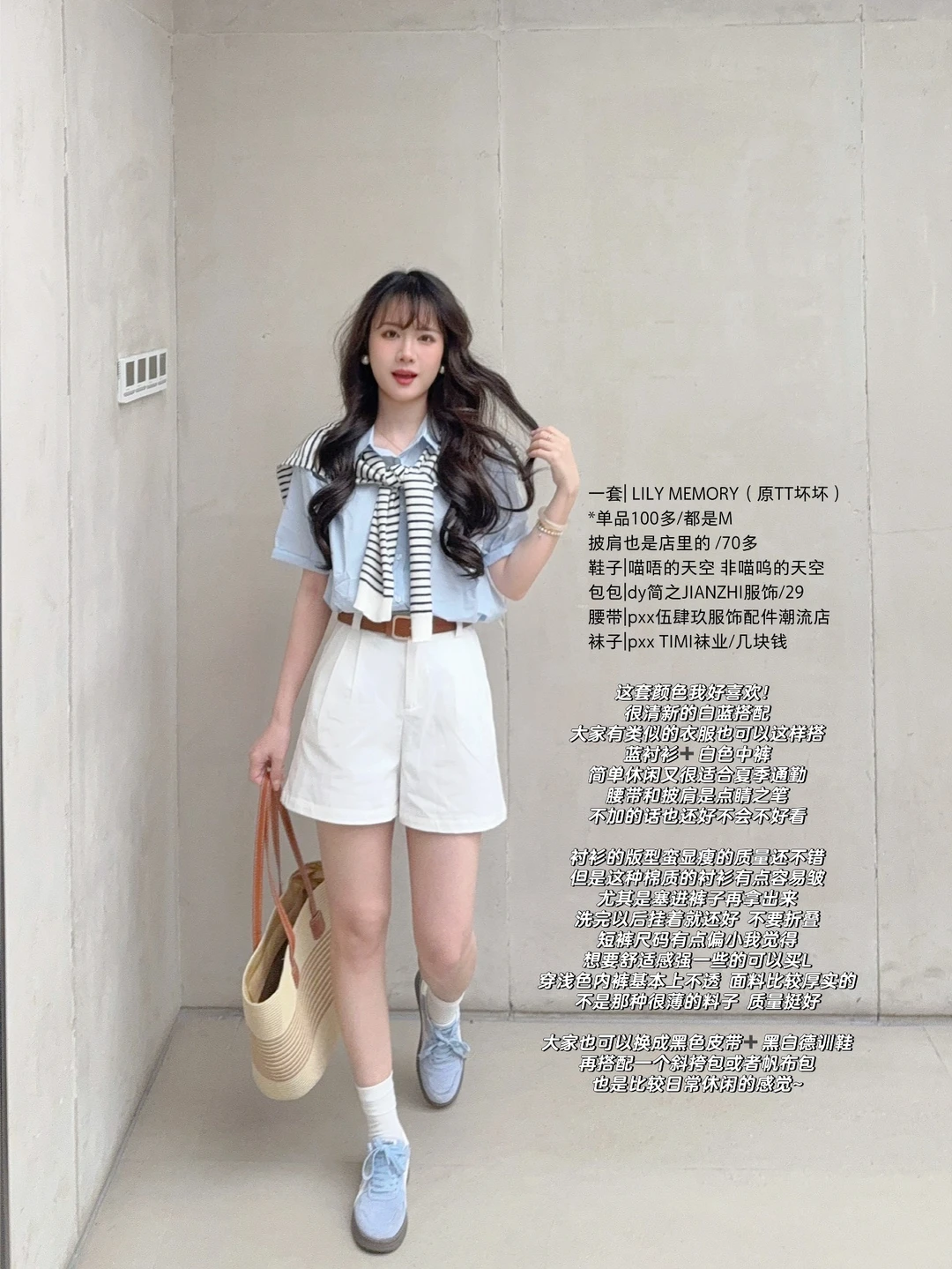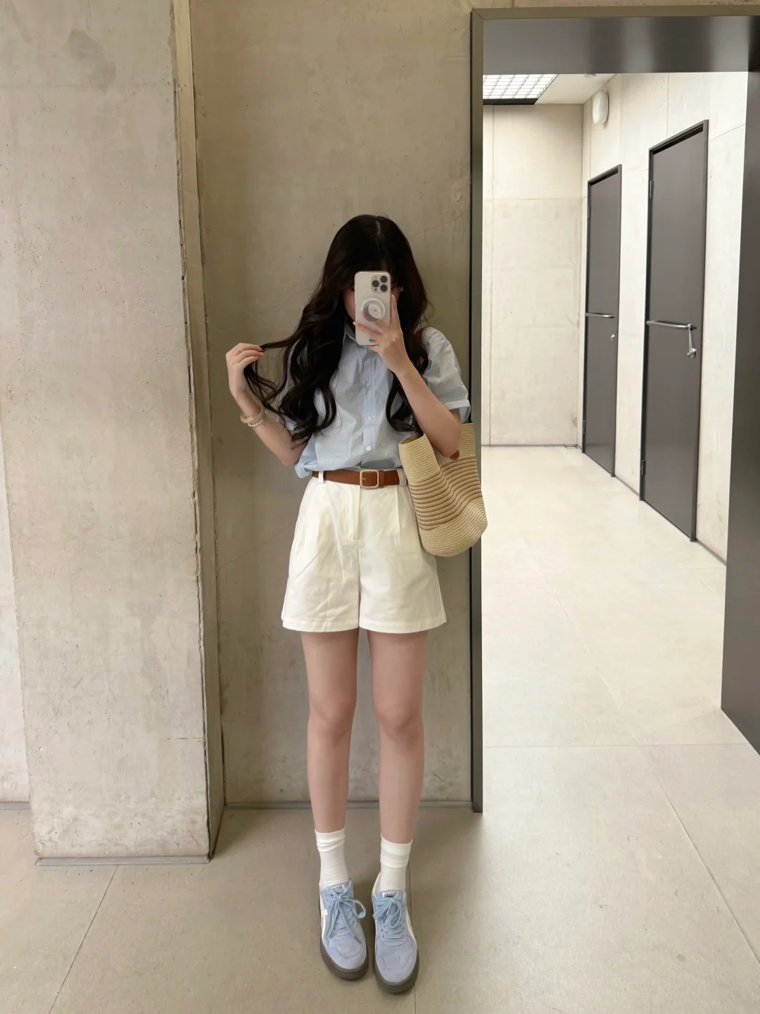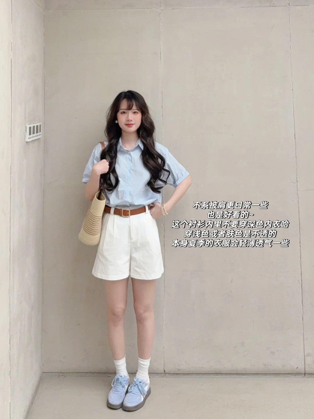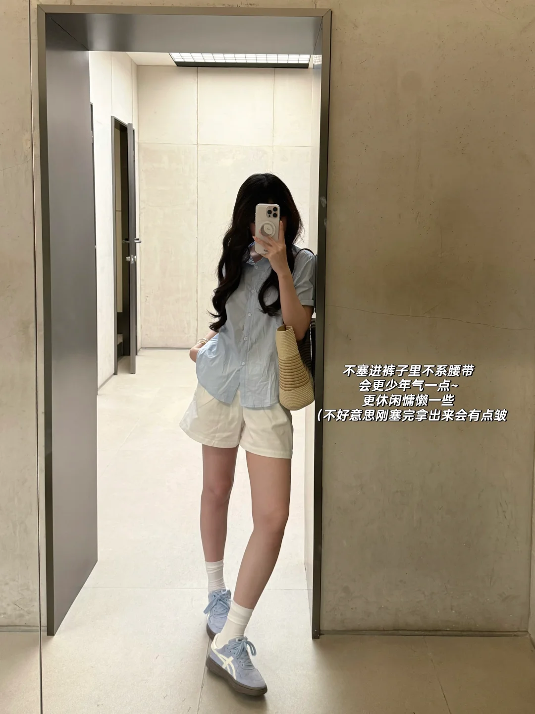 👉🏻白色中裤也可以搭其他颜色额衬衫或者正肩短袖