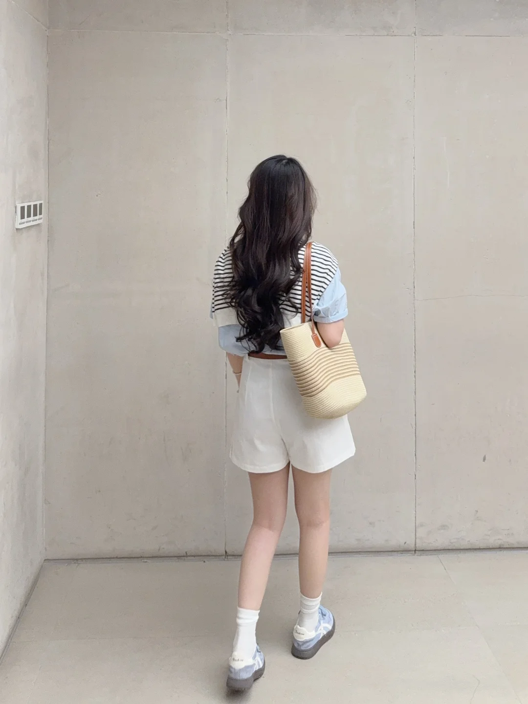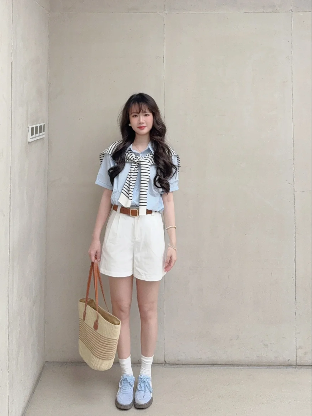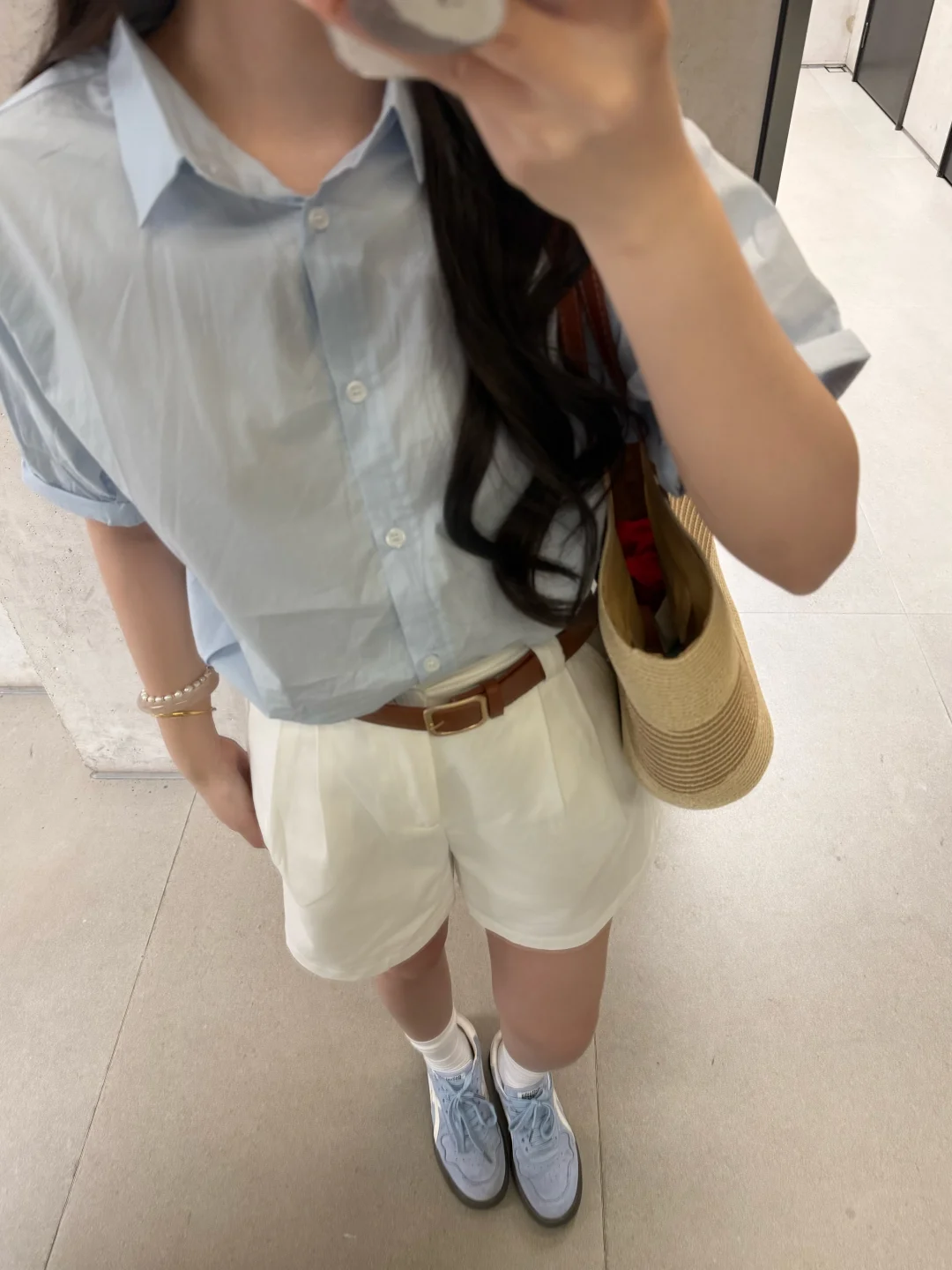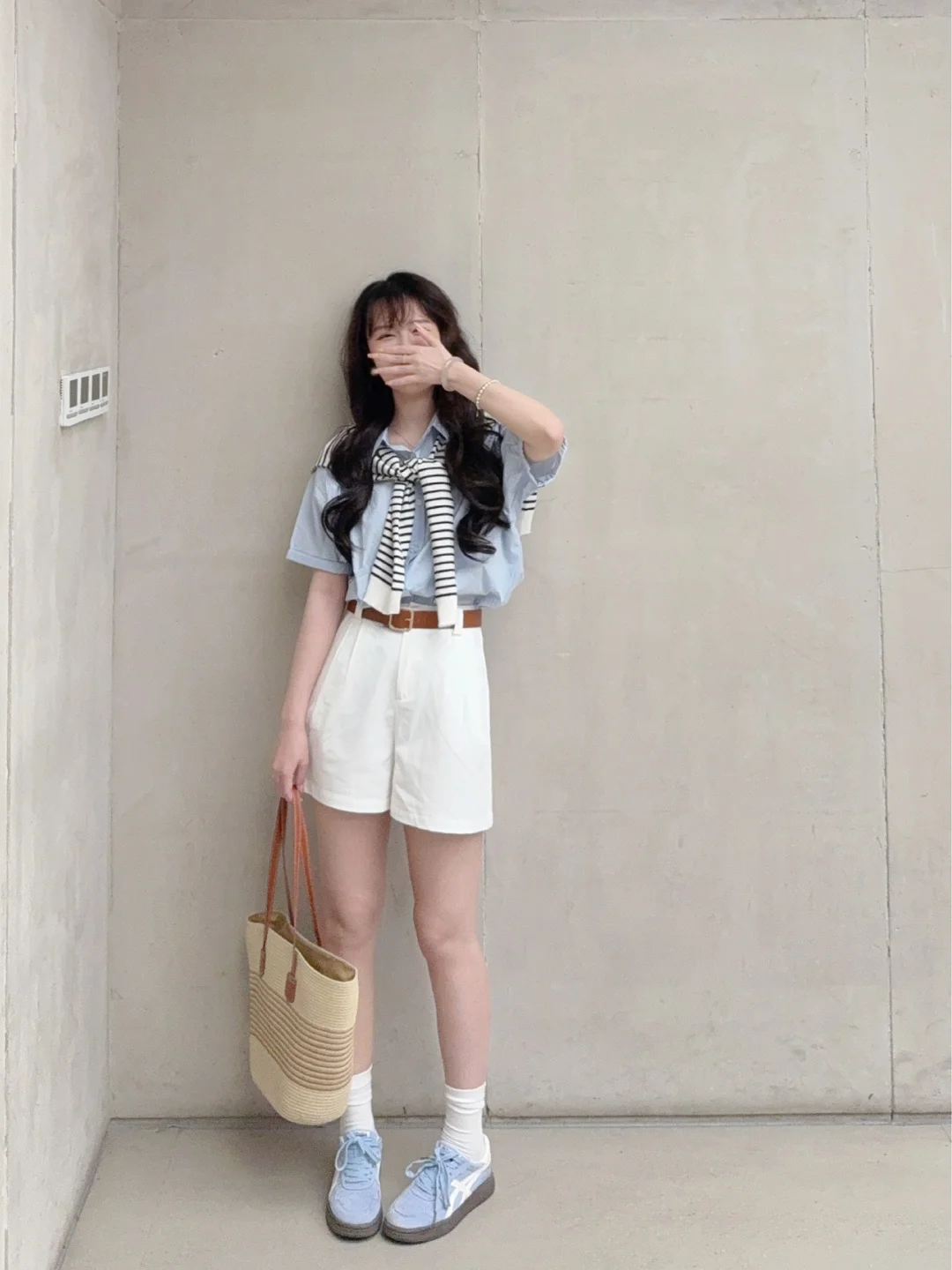 👉🏻白色中裤也可以搭其他颜色额衬衫或者正肩短袖