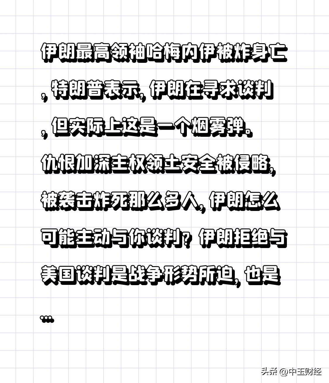 伊朗最高领袖哈梅内伊被炸身亡,特朗普表示,伊朗在寻求谈判,但实际上这是一个烟雾弹。 仇恨加深主权领土安全被侵略,被袭击炸死那么多人,伊朗怎么可能主动与你谈判? 伊朗拒绝与美国谈判是战争形势所迫,也是一种抗击决心的体现。就像当年美军攻打越南,把越南炸的稀巴烂,当时越南怎么可能与你谈判?美国对伊朗开战 伊朗怒批美国 伊朗最高领导层 伊朗外交大转向 伊朗命中目标 伊朗饱和打击 伊朗怒怼美国 特朗普政府空袭伊朗的后果是什么