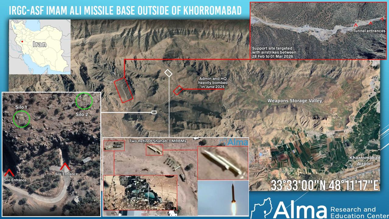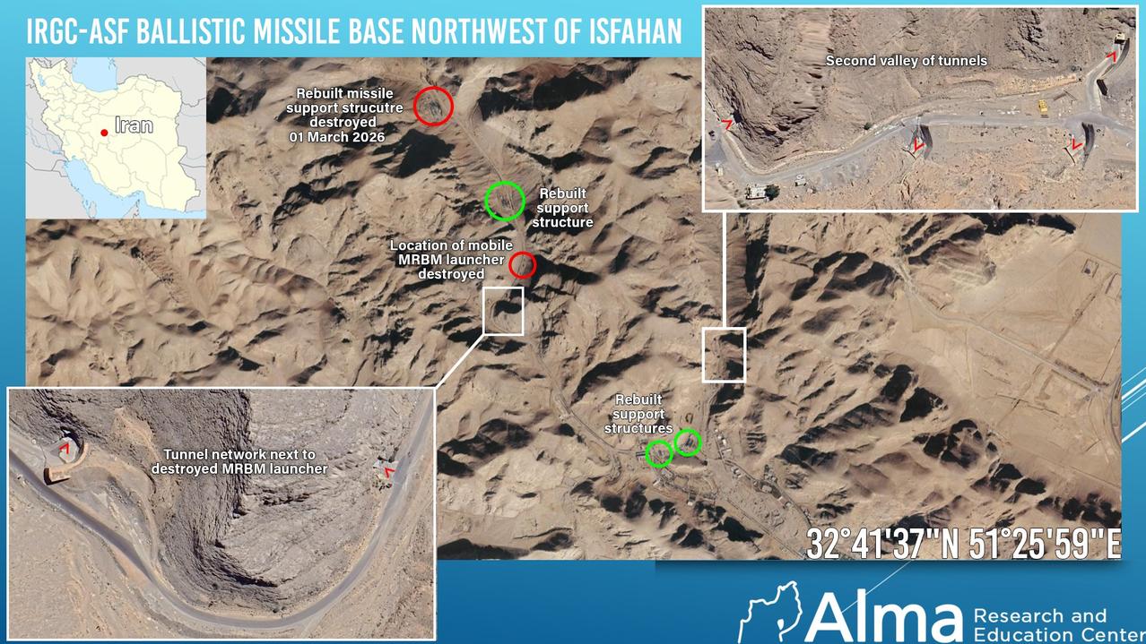 在“咆哮雄狮”行动开始后的48小时内,美以联合空袭了伊朗四个最大的弹道导弹基地,以下是相关细节(根据行星卫星图像分析): (视觉辅助材料为战前图像)1. 霍尔戈(Khorgo)——位于霍尔木兹甘省,该中程弹道导弹基地在2025年6月的军事行动中未遭攻击。截至2026年3月1日,至少有三座辅助设施被摧毁。该基地拥有地下发射井。2. 伊斯法罕(Isfahan)——位于伊斯法罕省,该基地在2025年6月的军事行动中地面部分遭到严重破坏。2025年6月战争中被摧毁的多座设施已重建,但截至2026年3月1日,其中至少有一座设施再次被摧毁。3. 霍拉马巴德(Khorramabad)——位于洛雷斯坦省,该基地在2025年6月的军事行动中地面部分遭到严重破坏。截至2026年3月1日,基地入口附近新建隧道网络的辅助设施遭到空袭。该基地也拥有地下发射井。 4. 大不里士——位于东阿塞拜疆省,该基地在2025年6月的军事行动中地面遭到严重破坏。在过去48小时内的最新一轮空袭中,通往地下隧道网络的入口和辅助设施遭到猛烈轰炸并被掩埋。该基地目前也正在进行一些重建工作。