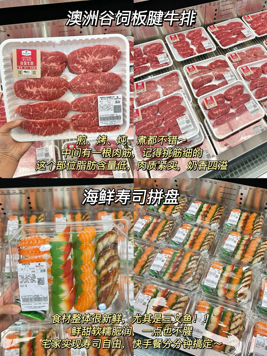 牛排鲜嫩多汁,瘦而不柴!半成品肉肉简单加热就能吃,寿司既有主食又有肉,吃得好满足✨