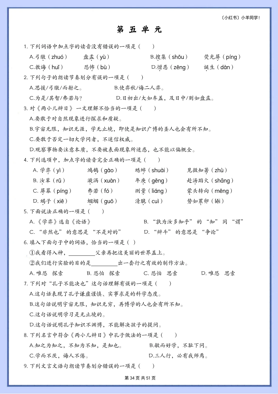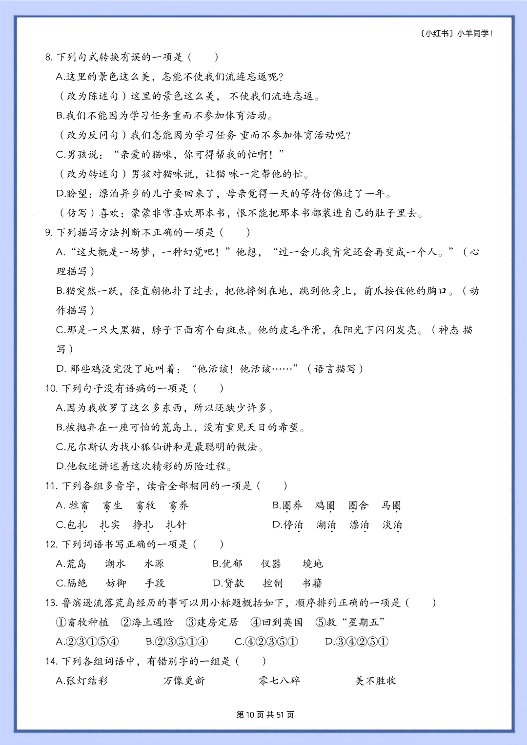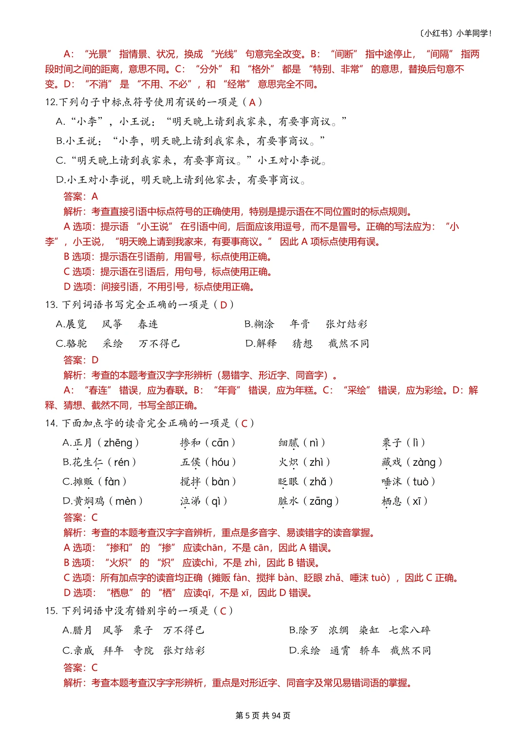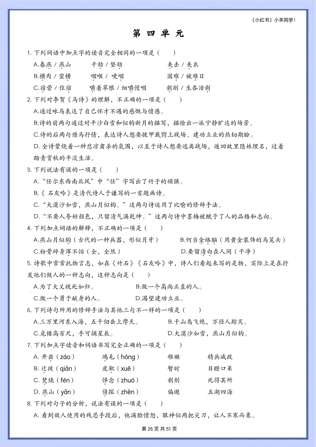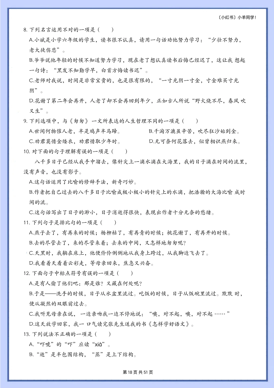 语文题真的是特别枯燥,需要书写的特别多,小朋友很抵触,很多时候都是大量重复的写写写,消耗孩子对语文的热情。 而这套题真的很适合小朋友,小朋友也非常愿意做,尤其是基础不好的小朋友,这套题非常推荐。因为全部是选择题,不需要写很多的字,但是考察的知识面真的非常非常多!! 比如: 辨析字音,短语类型,修辞手法,课文理解, 词语归类,汉字读音,词语搭配,多音字, 字词解释,病句改正,理解句子,语境理解, 课外阅读,句子排序,汉字字形,解释字义, …… 真的特别特别多的知识点。非常推荐这套题。 [玫瑰R] 内容: 六年级下册一共六个单元,每单元大约55道左右。 其中试题51页,答案94页。 答案解析非常详细。 ⚠️原创整理,禁止转载发布网络平台或商用,违者必究。