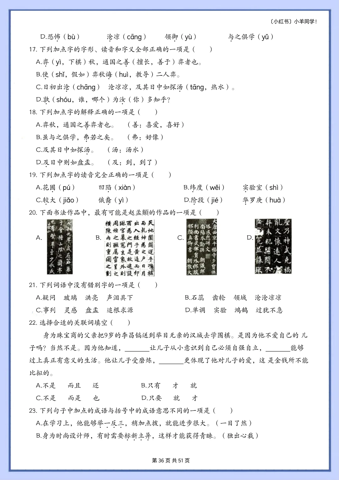 六年级下册丨基础知识选择题专项训练