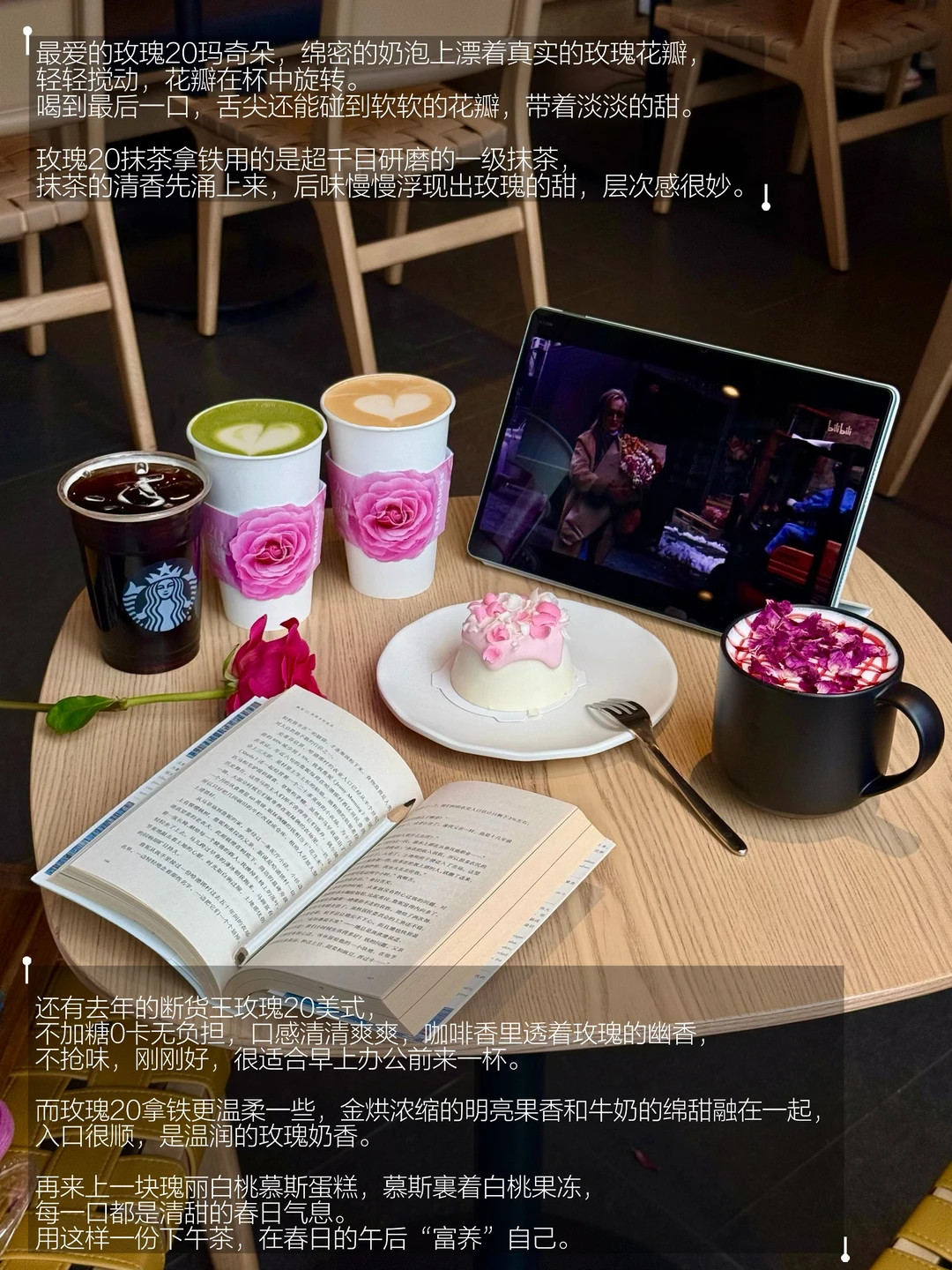 还有去年的断货王玫瑰20美式,不加糖0卡无负担,口感清清爽爽,咖啡香里透着玫瑰的幽香,不抢味,刚刚好,很适合早上办公前来一杯。而玫瑰20拿铁更温柔一些,金烘浓缩的明亮果香和牛奶的绵甜融在一起,入口很顺,是温润的玫瑰奶香。