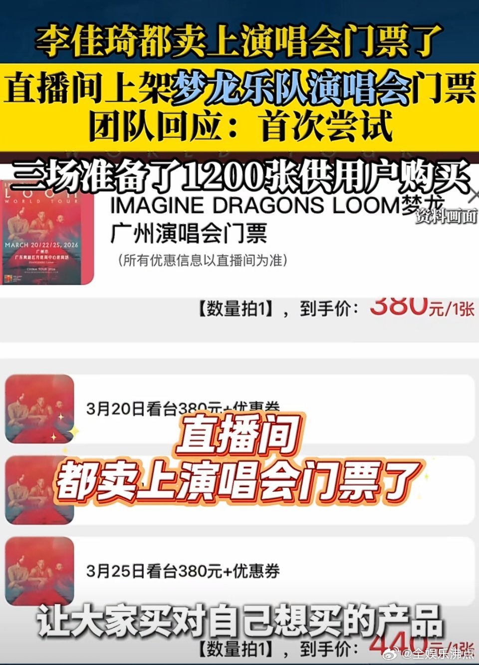 团队回应李佳琦直播间上架梦龙演唱会门票 团队官宣:李佳琦直播间上架梦龙门票,未来将拓展更多演出与赛事合作!