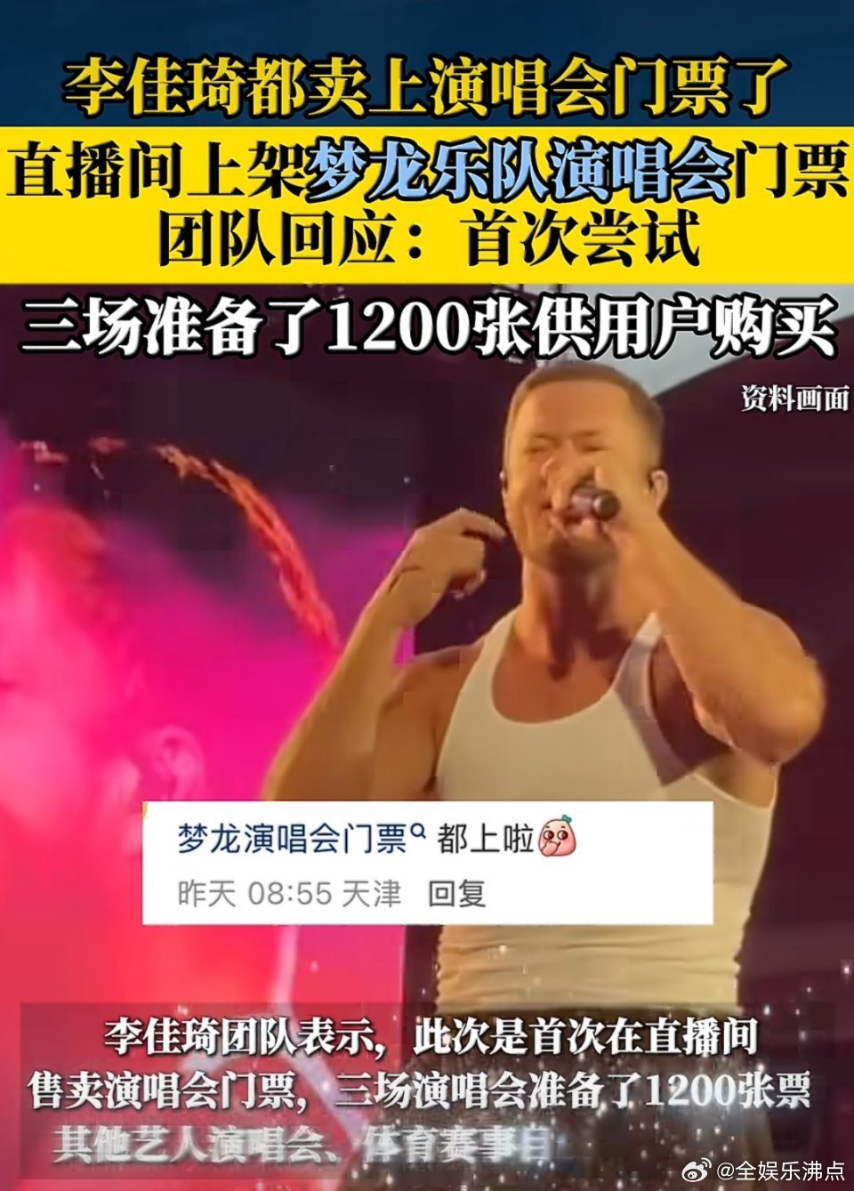 团队回应李佳琦直播间上架梦龙演唱会门票 团队官宣:李佳琦直播间上架梦龙门票,未来