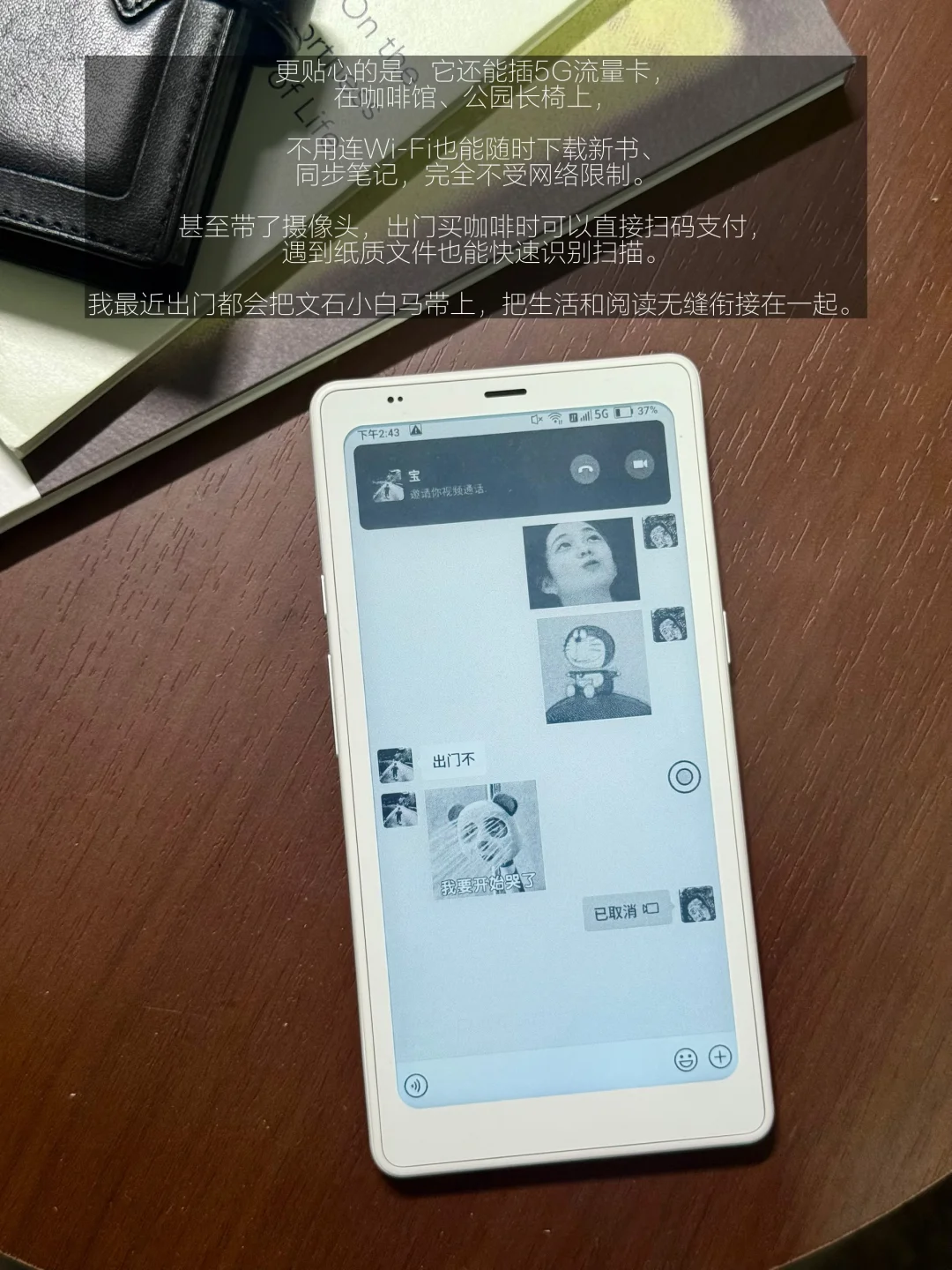 更贴心的是,它还能插5G流量卡,在咖啡馆、公园长椅上,不用连Wi-Fi也能随时下载新书、同步笔记,完全不受网络限制。甚至带了摄像头,出门买咖啡时可以直接扫码支付,遇到纸质文件也能快速识别扫描。我最近出门都会把文石小白马带上,把生活和阅读无缝衔接在一起。