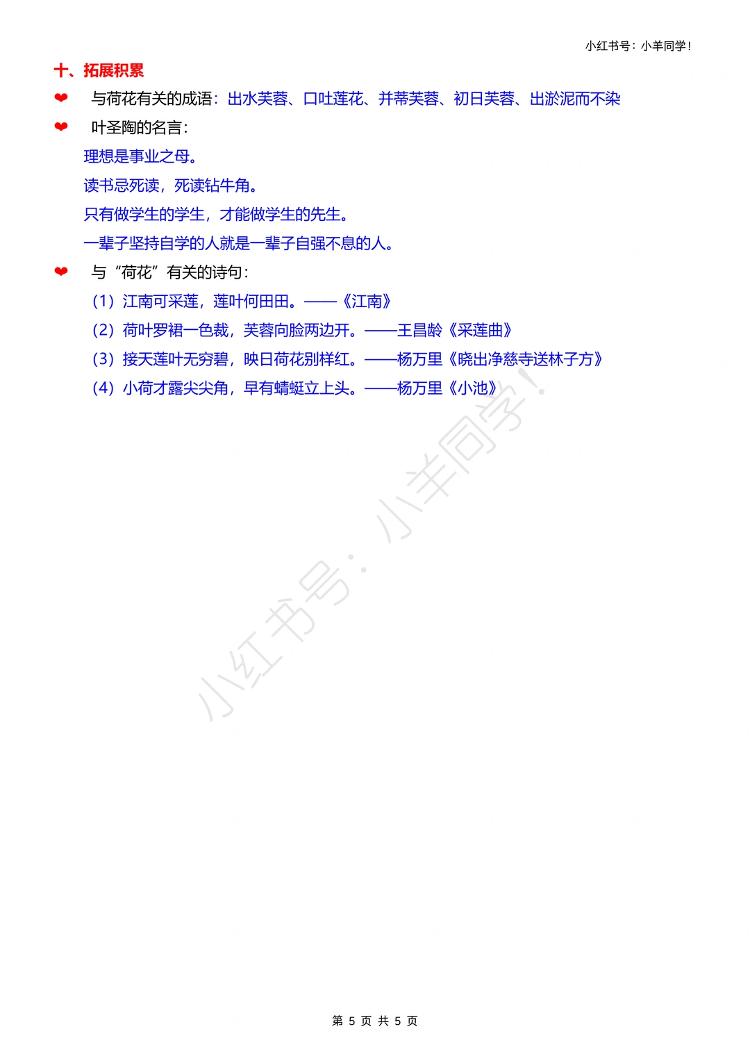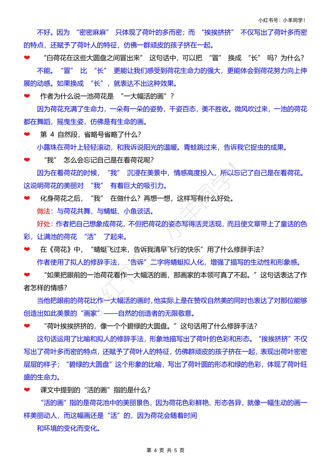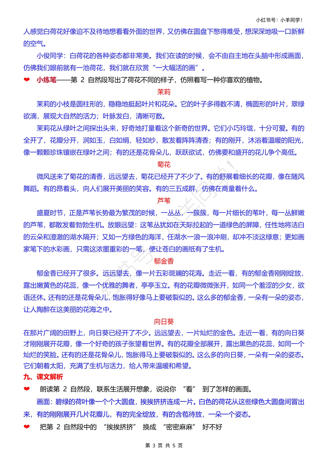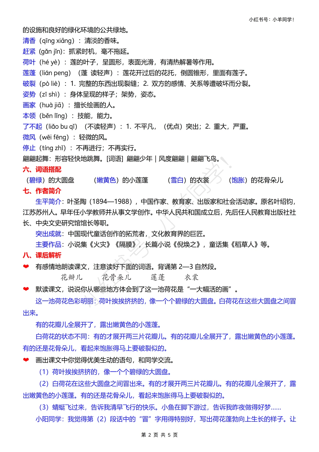 2️⃣ 词句积累:摘抄文中描写荷花姿态的优美语句,体会“一大幅活的画”的生动表达~