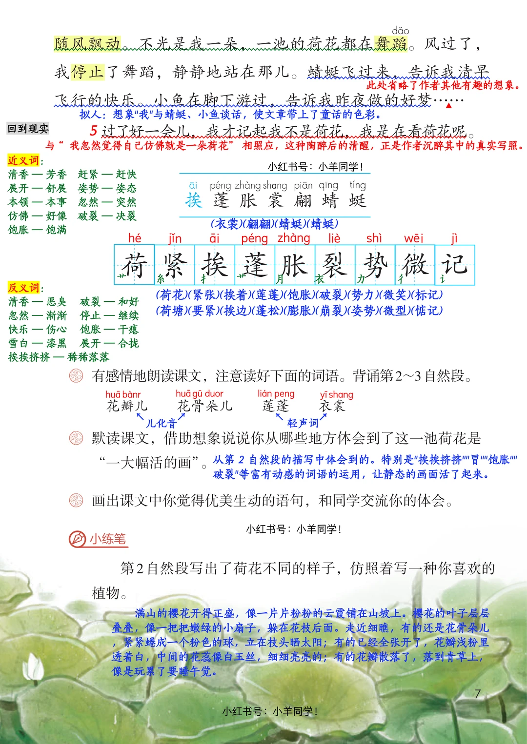 跟着这份目标学,《荷花》轻松拿下!再也不用怕课文背诵和词句赏析啦~