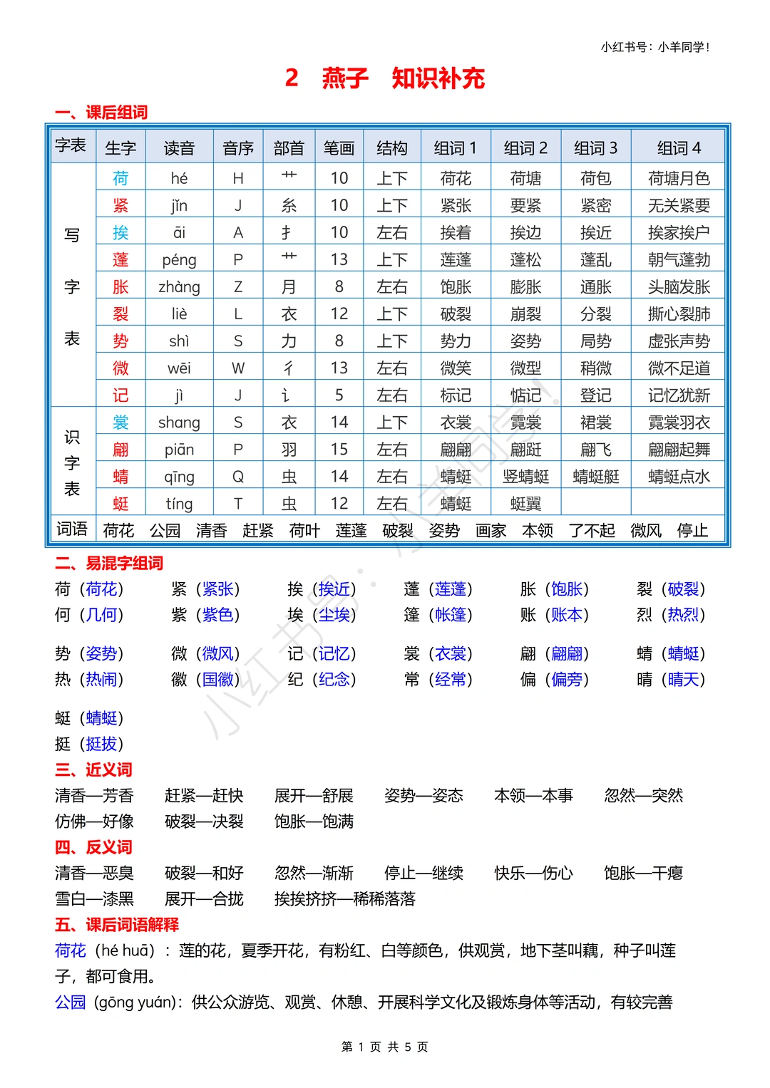 会写:荷、紧、挨、蓬等生字,还有 “荷花、莲蓬” 等词语要会写哦!