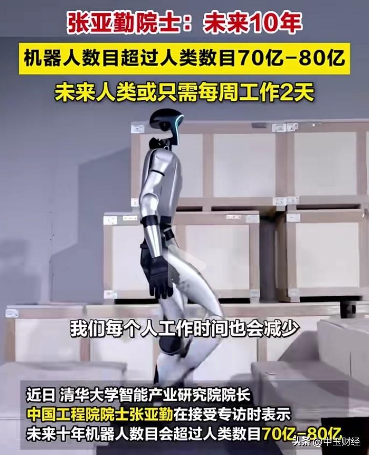 【理想丰满!】中科院专家预测未来十年机器人超人类数量,人们一周工作两天且薪水不降,这听起来简直像天方夜谭,但又让人忍不住期待。清华大学张亚勤也有类似预测,2035年全球机器人或达70 - 80亿超人类总数。 想想看,要是真能少工作多拿钱,生活得多惬意。就像以前蒸汽机解放体力,现在AI解放智力,重复性劳动被机器人替代。不过,这也有挑战。就像视频会议没减少出差一样,人类互动需求不会简单被取代。这预测靠不靠谱还得打个问号,但要是真实现,绝对是一场工作革命。 人机器人价值 机器人价值 机器人工作替代 全球机器人技术 机器人三大原则 机器人寿命 机器人产量